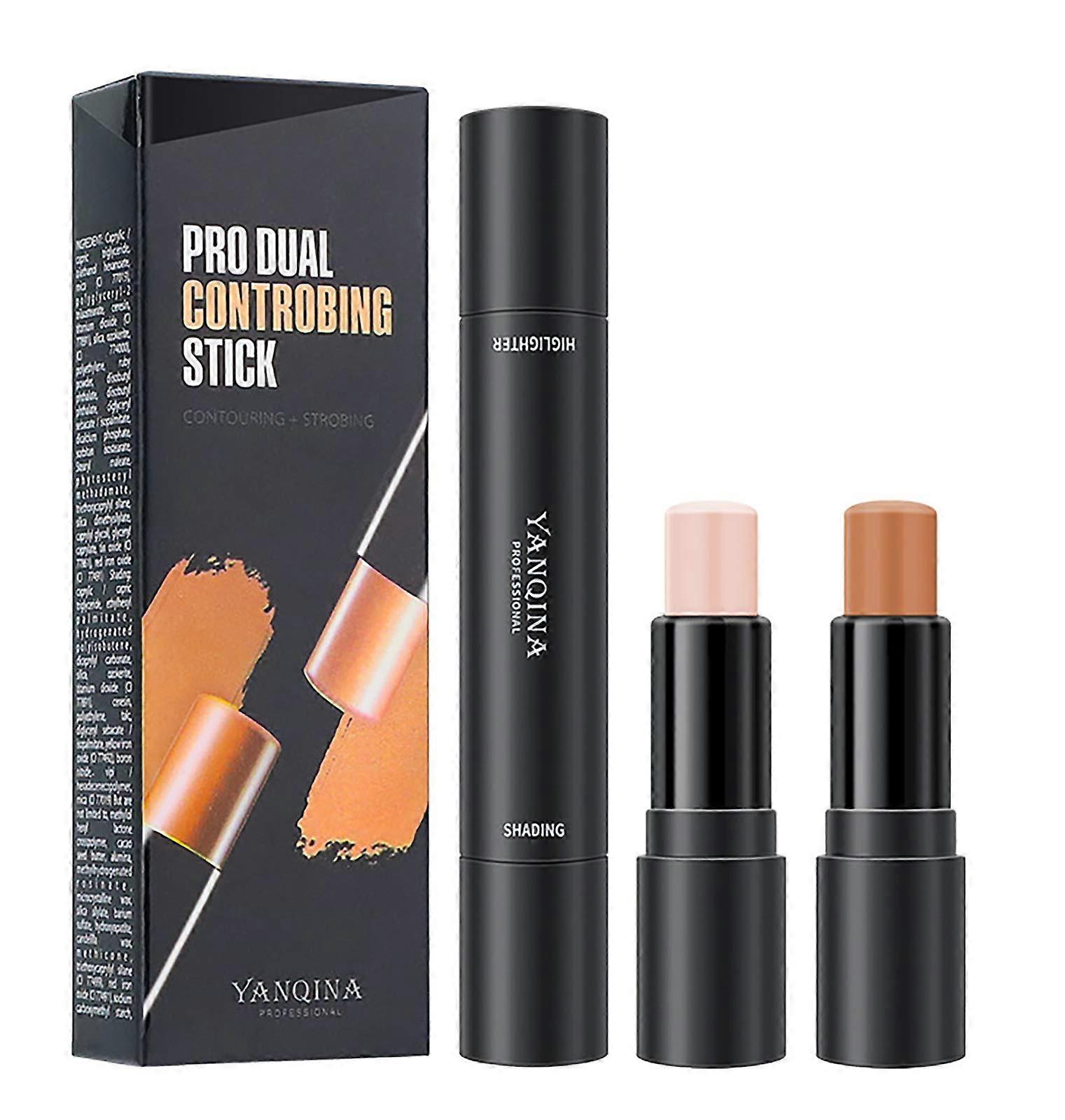 2 in 1 Highlighter and Contour Stick Waterproof Dual Shade Shimmer Makeup Pen Ivory Dark Brown