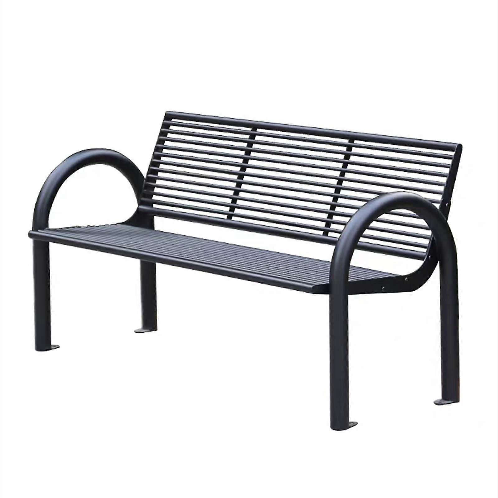 Outdoor Garden Bench 64 Inch Weather‑Resistant Steel Frame, 2‑Person Patio Bench with Ergonomic Backrest for Porch or Backyard