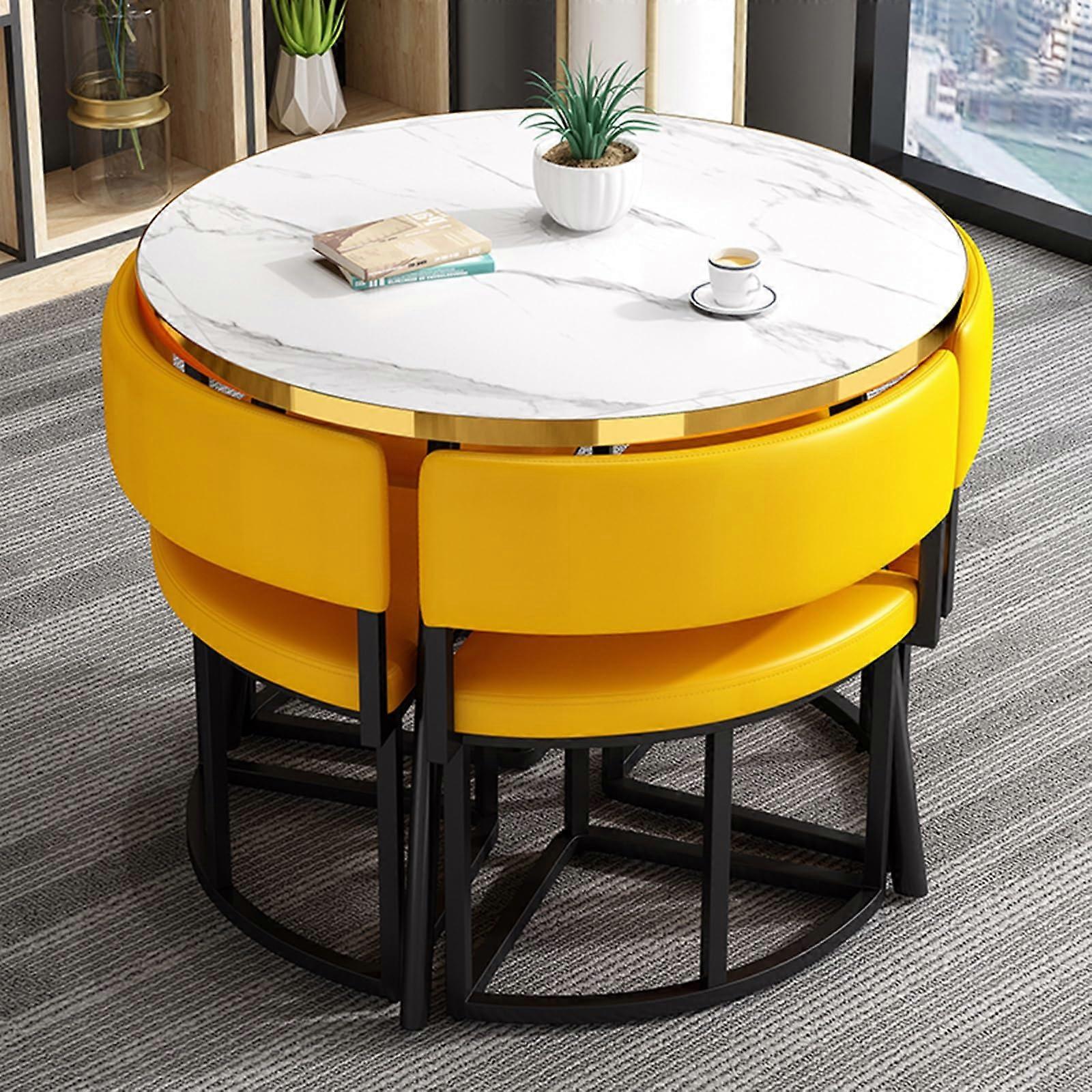 Negotiation Table and Chairs, 90cm Yellow and White Round Dining Set for Kitchen, Balcony or Office