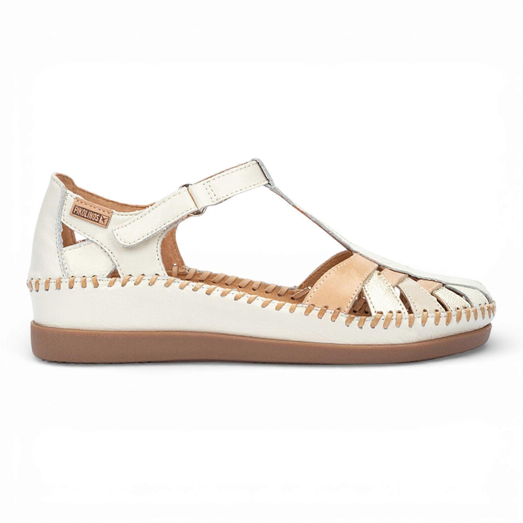Pikolinos Cadaques Women's White Leather Comfort Summer Semi-Open Wedge Sandal Shoes