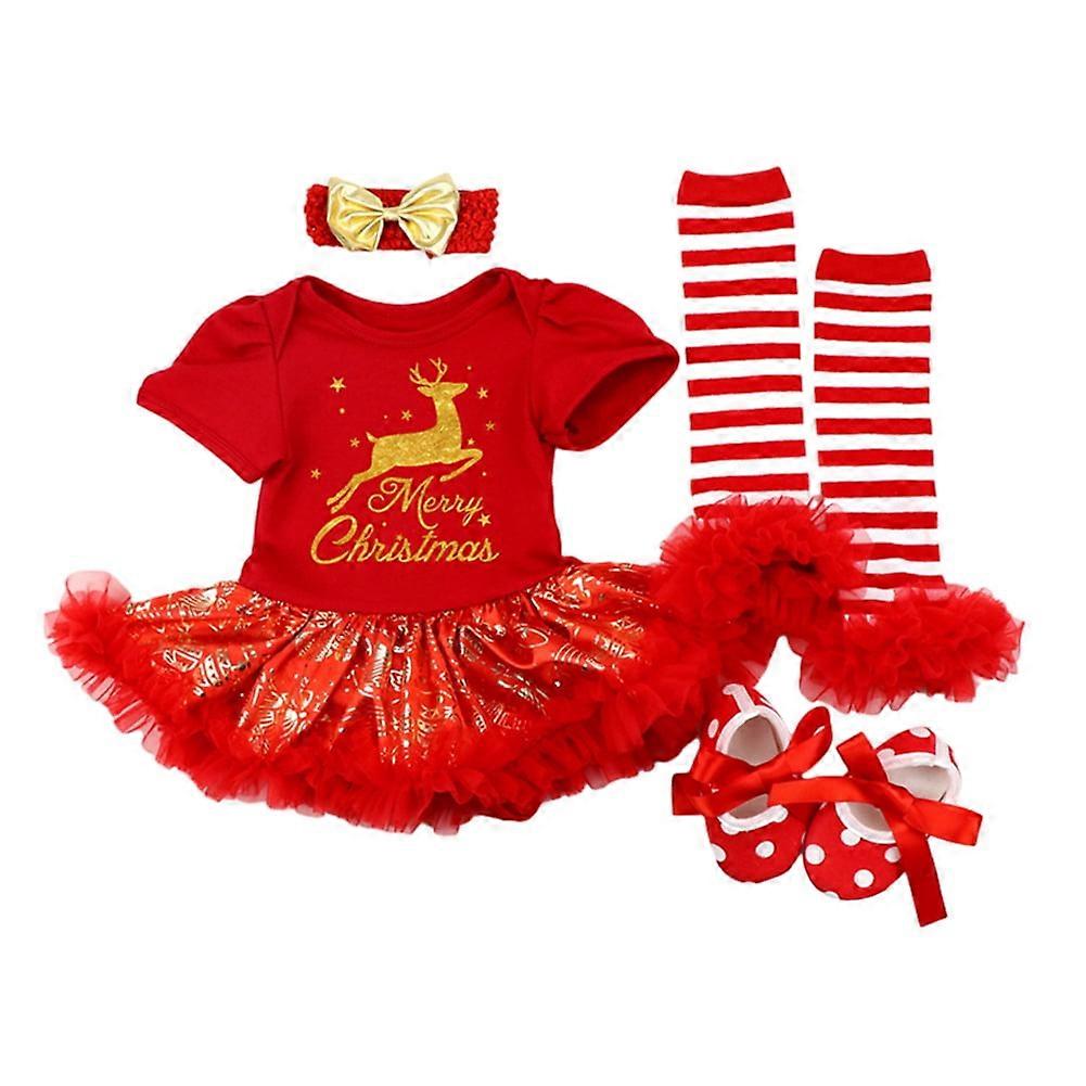 SILVERCELL 4Pcs Baby Girls Christmas Outfits Set Newborn Christmas Romper Tutu Dress Headband Leg Warmer Shoes Xmas Clothes 0-18 Months