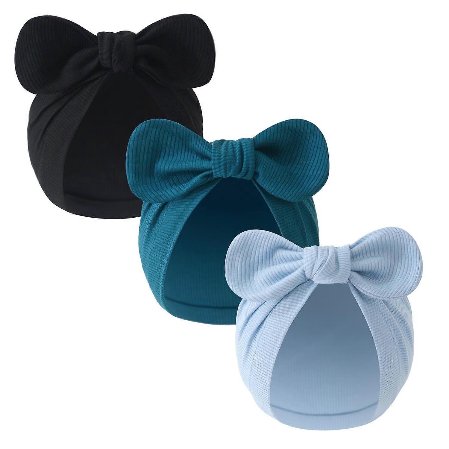 3PCS Baby Girls Turban Hats with Bow Newborn Hospital Caps Bonnet Beanies Headwraps for Infants Toddlers