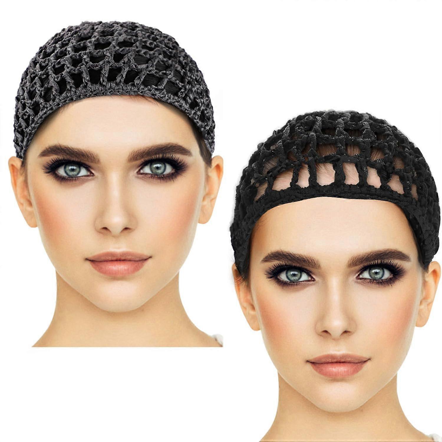 Women's Crochet Hair Net Cap, Black and Gray Hair Snood with Comfortable Knit Fit and Durable Mesh