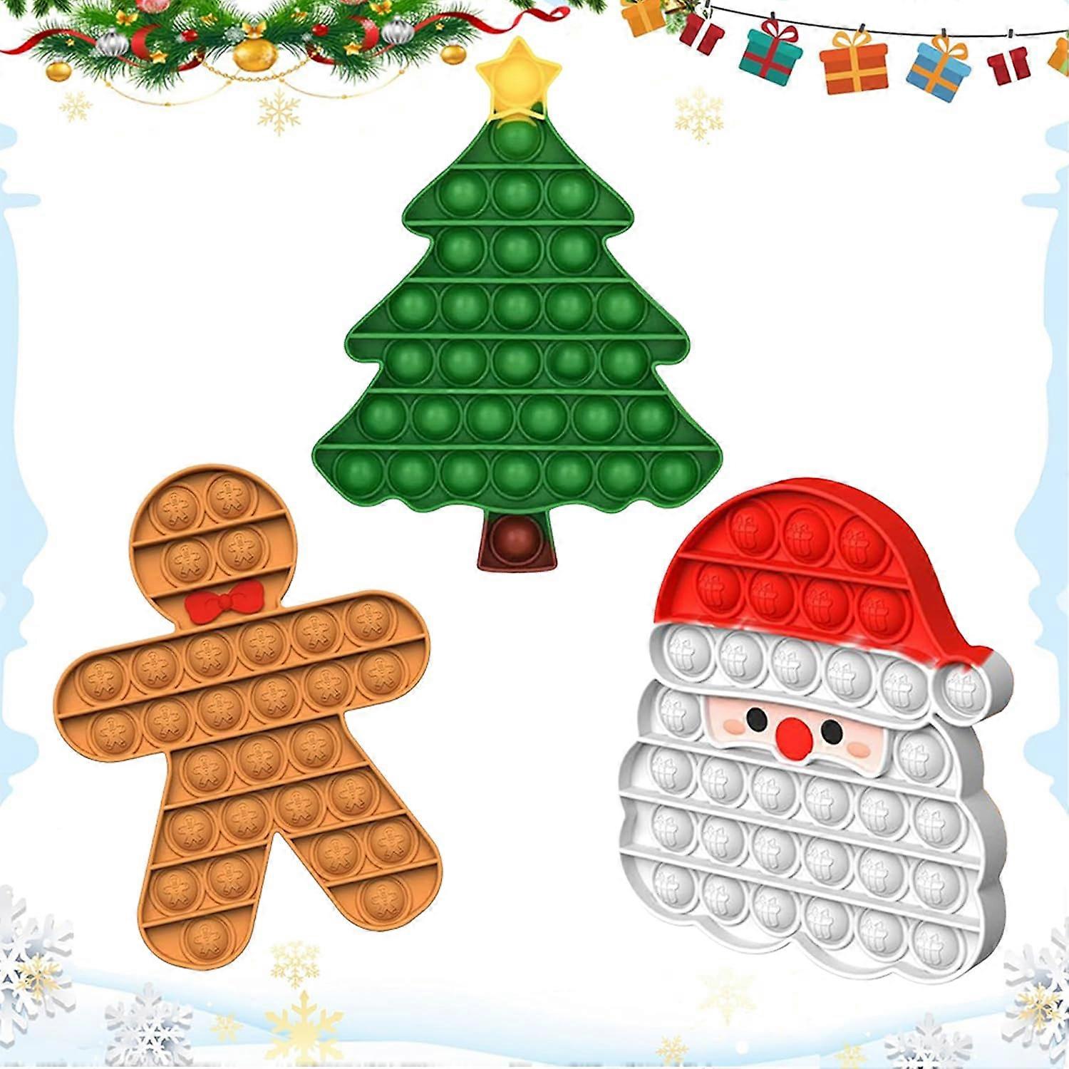 Christmas Pop Fidget Toys Set for Kids, 3 Festive Designs Holiday Sensory Stocking Stuffers
