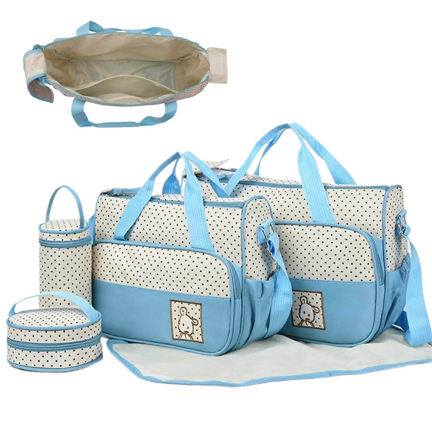 5PCS Waterproof Baby Diaper Bag Set Sky Blue with Capacity Storage and Accessories for Parents