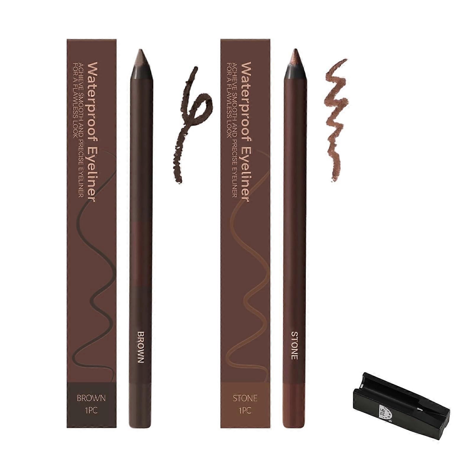 24 Hour Waterproof Eyeliner Duo, Long Lasting Sharpenable Brown and Stone Pencil for Eyes and Brows