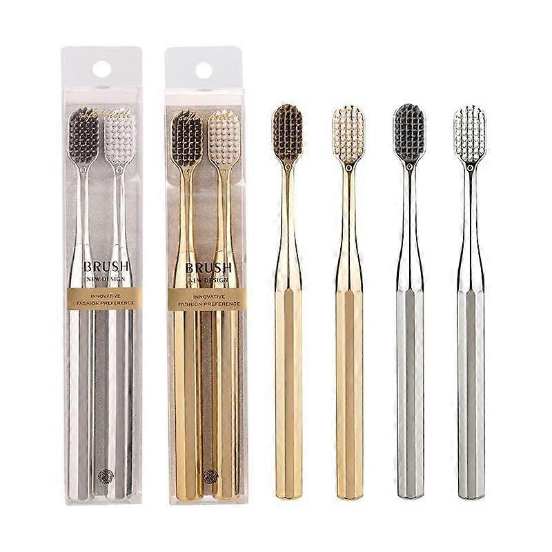 Ultra Soft Toothbrush Set for Sensitive Gums, Gold and Silver, Fine Bristles with Travel Case