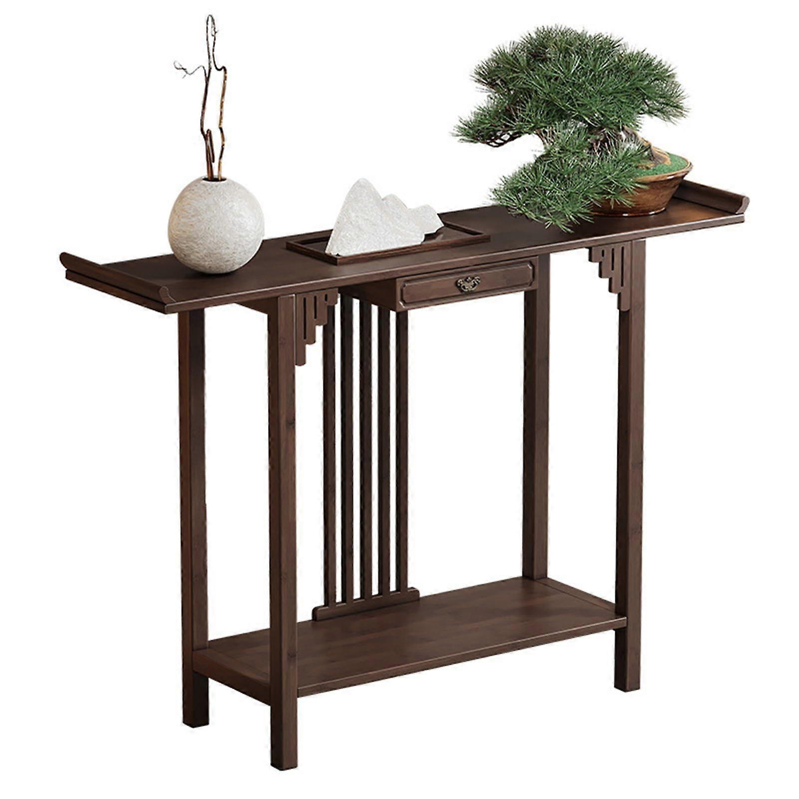 Large Bamboo Buddhist Altar Table with Drawer, Walnut Finish Meditation Shrine for Home Worship