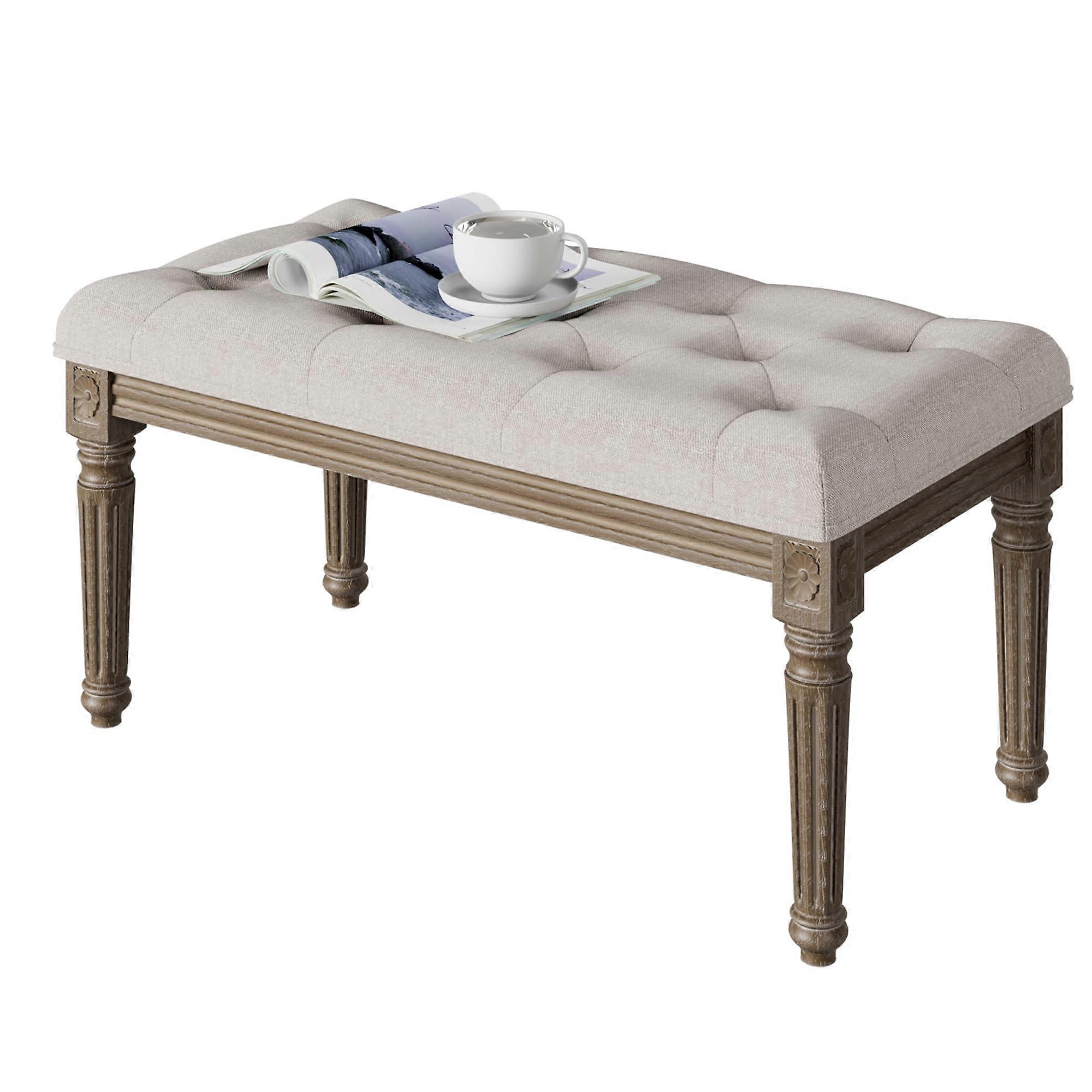 Tufted Upholstered Bench with Vintage Padded Seat for Living Room, Bedroom, Hallway, Beige