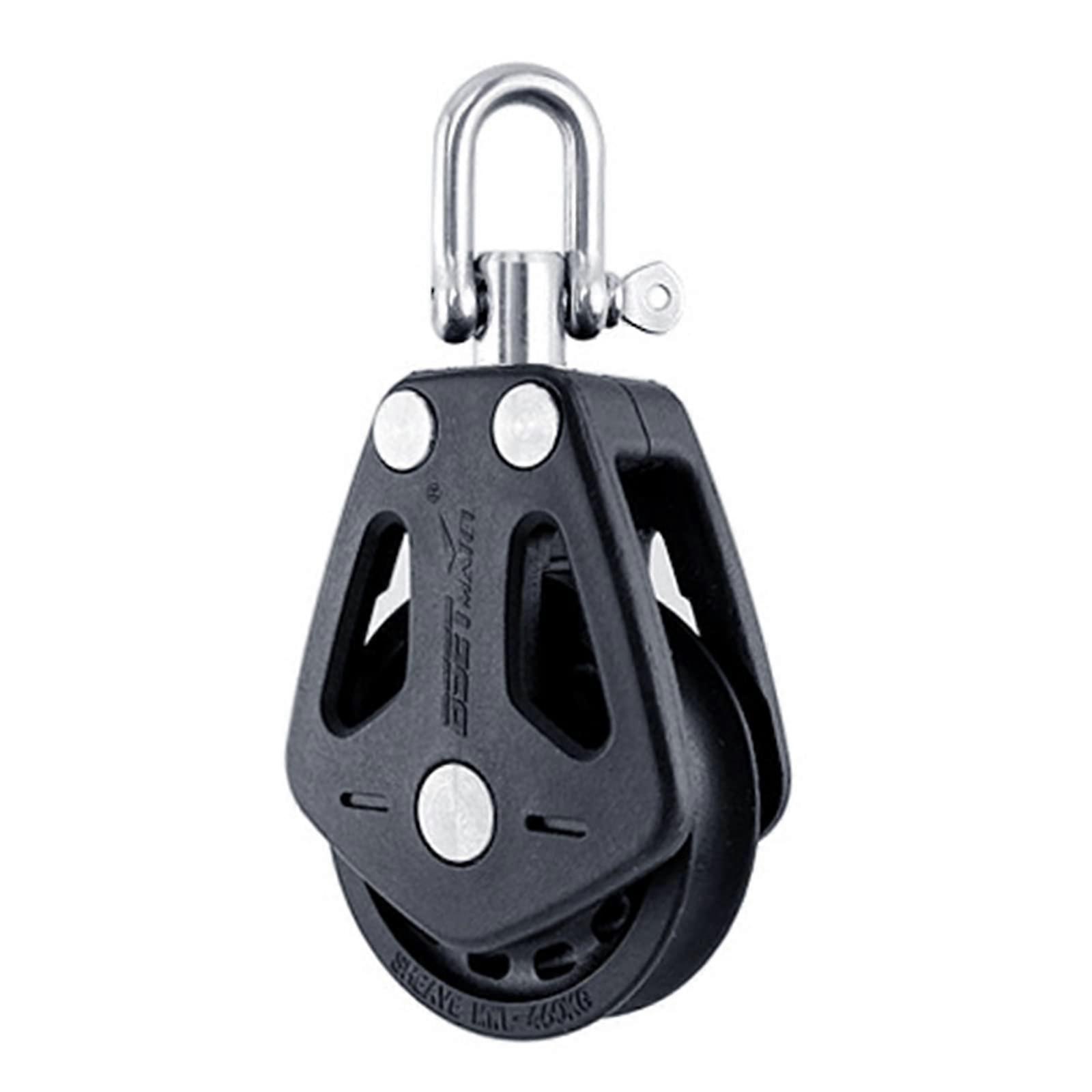 Heavy Duty Rope Pulley Block 10mm Single Sheave with Shackle, Low Friction Plain Bearing, Marine Grade