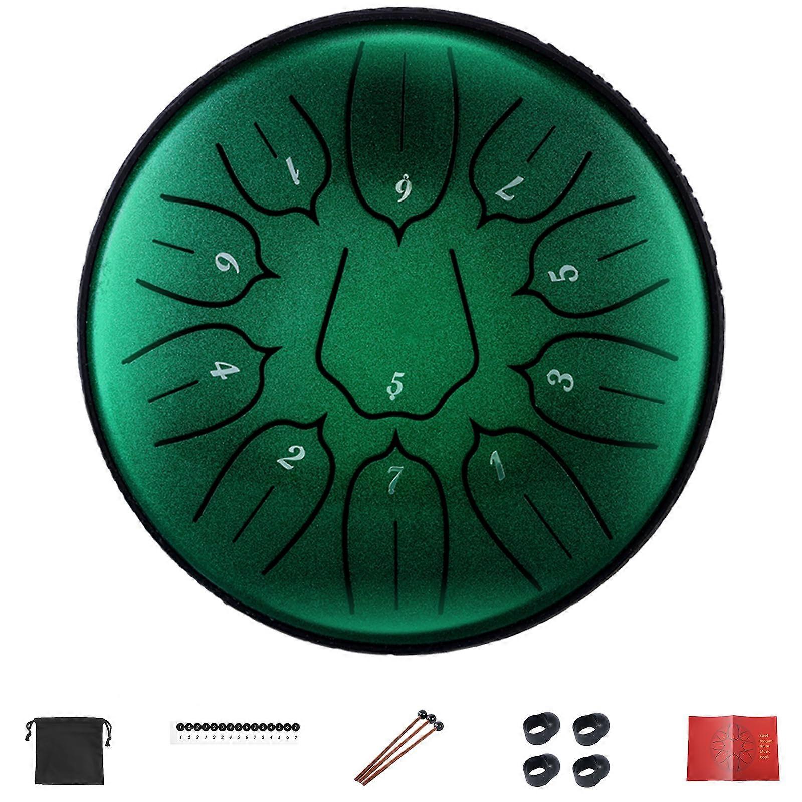 Steel Tongue Drum 6 Inch 11 Notes Green with Clear Melodic Range and Durable CorrosionResistant Finish