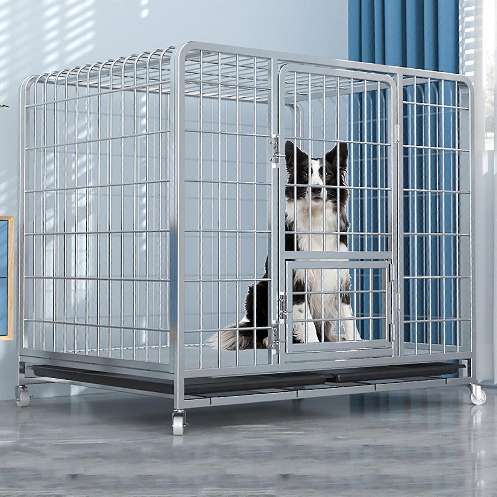 Heavy Duty Dog Crate with Double Doors and Removable Tray, Large Metal Dog Kennel for Indoor Outdoor Use
