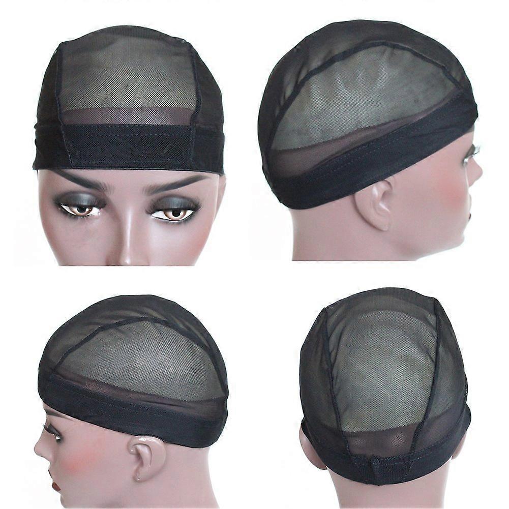 Adjustable Black Spandex Wig Cap Medium Size for Sew In Hair Weaving with Elastic Fit, 2 Pack