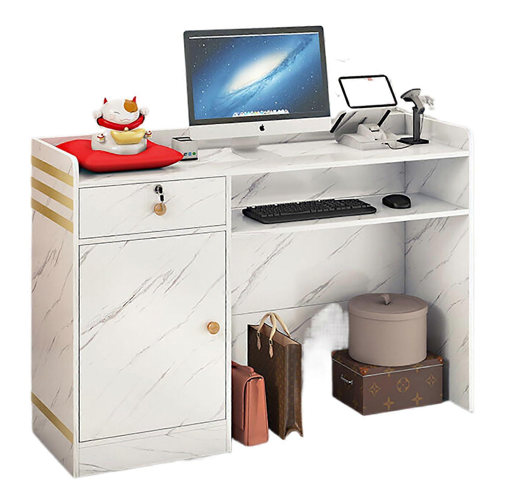 140cm Small Office Reception Desk with Drawers, SpaceSaving Counter for Narrow Spaces and Retail