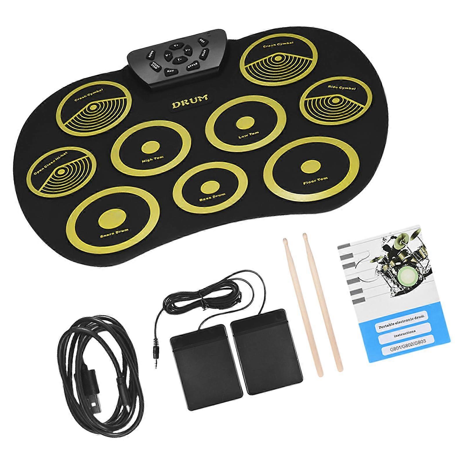 Electronic Drum Set with 9 Pad Roll Up Design USB Powered Builtin Speakers Drum Sticks Pedals