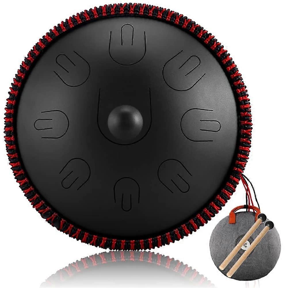 Handpan Drum 9Note D Minor Black Overview A handcrafted 9note handpan tuned to D minor, designed for clear overtones, stable performance, and easy playability for beginners and experienced players alike. Built on the Helmholtz resonator principle for rich sustain and focused projection. Key features and benefits Steel drum overtone design: Each sound area combines a fundamental pitch and a corresponding octave to produce strong, penetrating overtones and a fuller, more expressive tone. 9note D minor tuning: Center note D3 with eight surrounding notes A3, Bb3, C4, D4, E4, F4, G4, A4, providing a musically cohesive scale ready for improvisation and composition. Playability for beginners: Tongue layout and bagstyle construction preserve the tactile response of traditional handpans, making basic striking techniques easy to learn and control. Steady silicone feet: Shockproof silicone feet provide stable placement, improve resonance by sealing the bottom, and deliver smoother tone, louder volume, and more accurate tonality. Handwoven rattan mat included: A woven rattan piece is included as a gift. The rim uses a Ushaped rubber edge and concealed welding for a clean finish. Durable craftsmanship: Sealed bottom and refined edge treatment enhance durability and consistent sound over time. Specifications Product name: Handpan drum Tuning: 9note D minor (adjustable) Center note: D3 Notes: A3, Bb3, C4, D4, E4, F4, G4, A4 Size: Diameter 40 cm, Height 15 cm (approx. 14 inches diameter) Acoustic principle: Helmholtz resonator Color: Black (also listed in Silver) Package weight: 4.3 kg / 9.5 lb What you get 1 x 9note handpan drum 1 x backpack for transport and storage 1 x pair of mallets 1 x music book 1 x handwoven rattan mat (gift) Use scenarios Meditation and relaxation: Sit comfortably, play gentle patterns, and use the rich overtones to create a calming soundscape for practice or group sessions. Yoga and breathwork classes: Add melodic rhythm and sustained tones to support pacing and atmosphere during movement or guided breathing. Live performance and composition: Integrate the handpan into acoustic sets or studio arrangements for unique melodic textures and melodic percussion layers. Practical notes Color and appearance may vary slightly due to lighting and display differences. Measurement tolerance is approximately plus or minus 1 to 2 cm. The instrument is packaged with a backpack and mallets for easy transport and practice. This handpan offers a clear, resonant sound, stable performance features, and an included accessory set to help you start playing right away.
