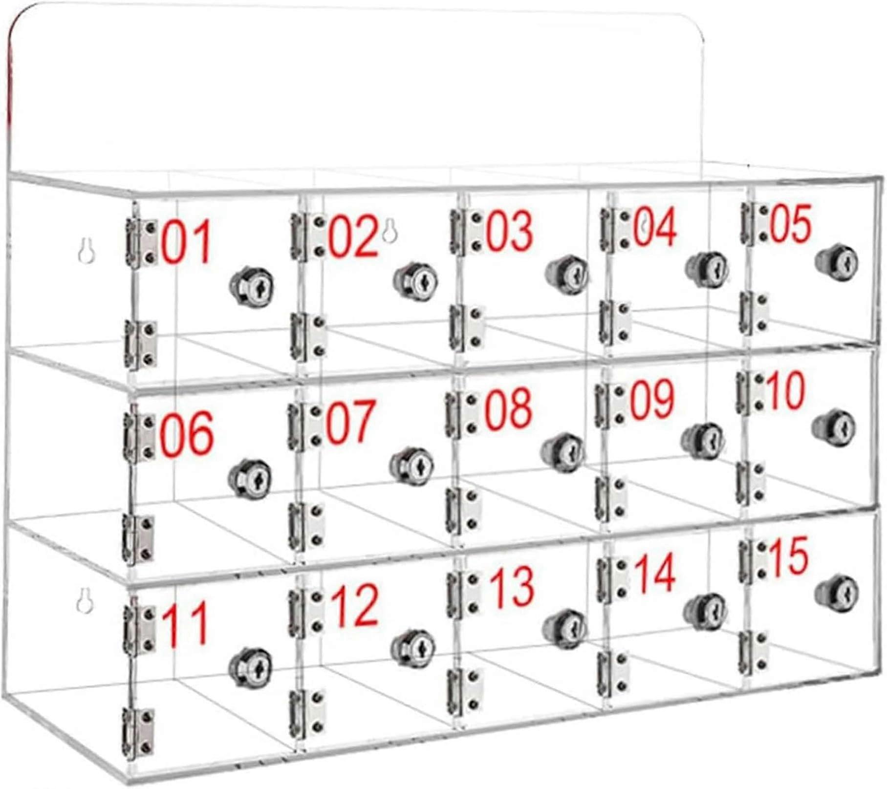 15 Door Acrylic Cell Phone Lock Box with Individual Locking Compartments, Wall Mounted Phone Storage Cabinet for Office School