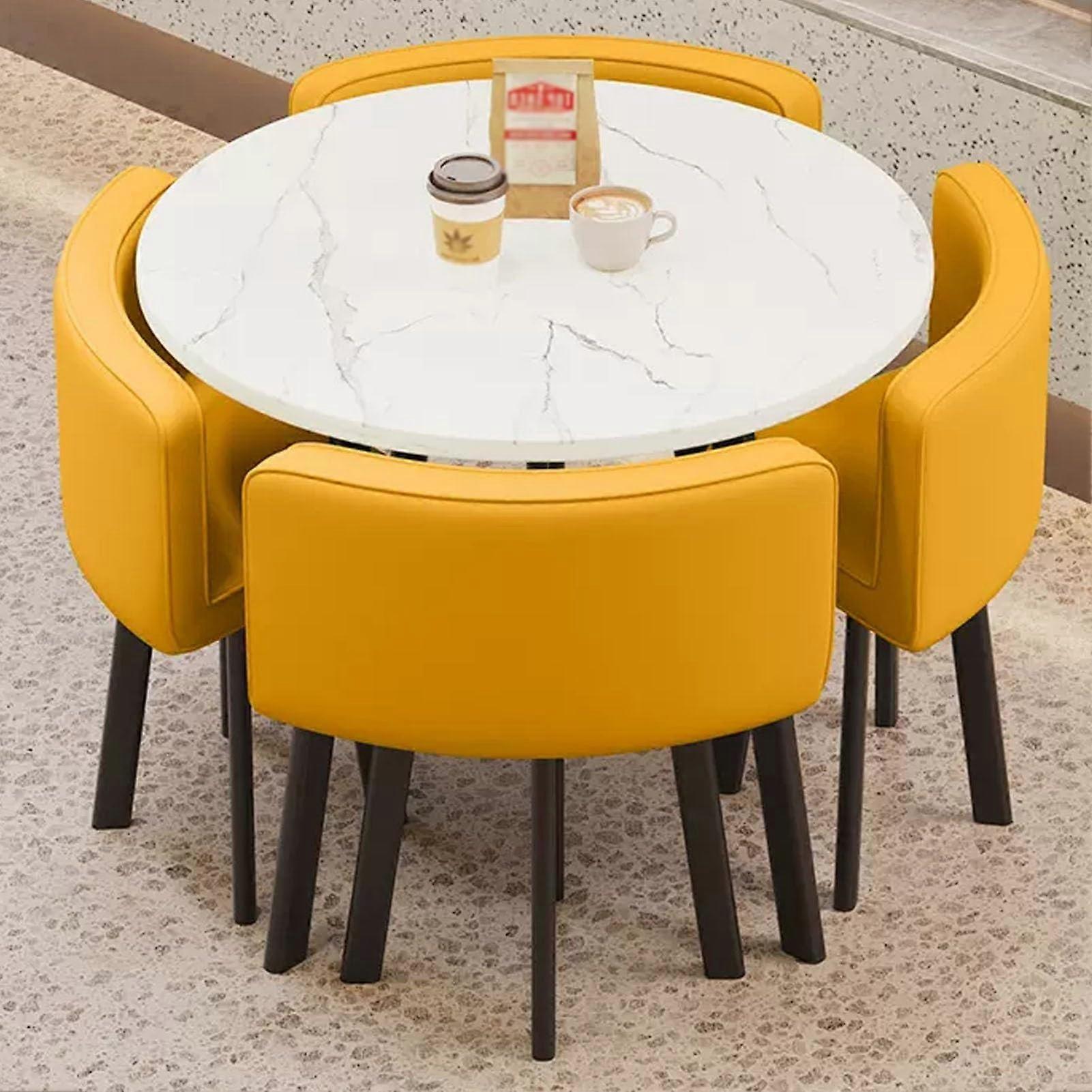 Modern Yellow Round Office Reception Table and Chair Set for 4 with Soft Seats for Dining Lounge