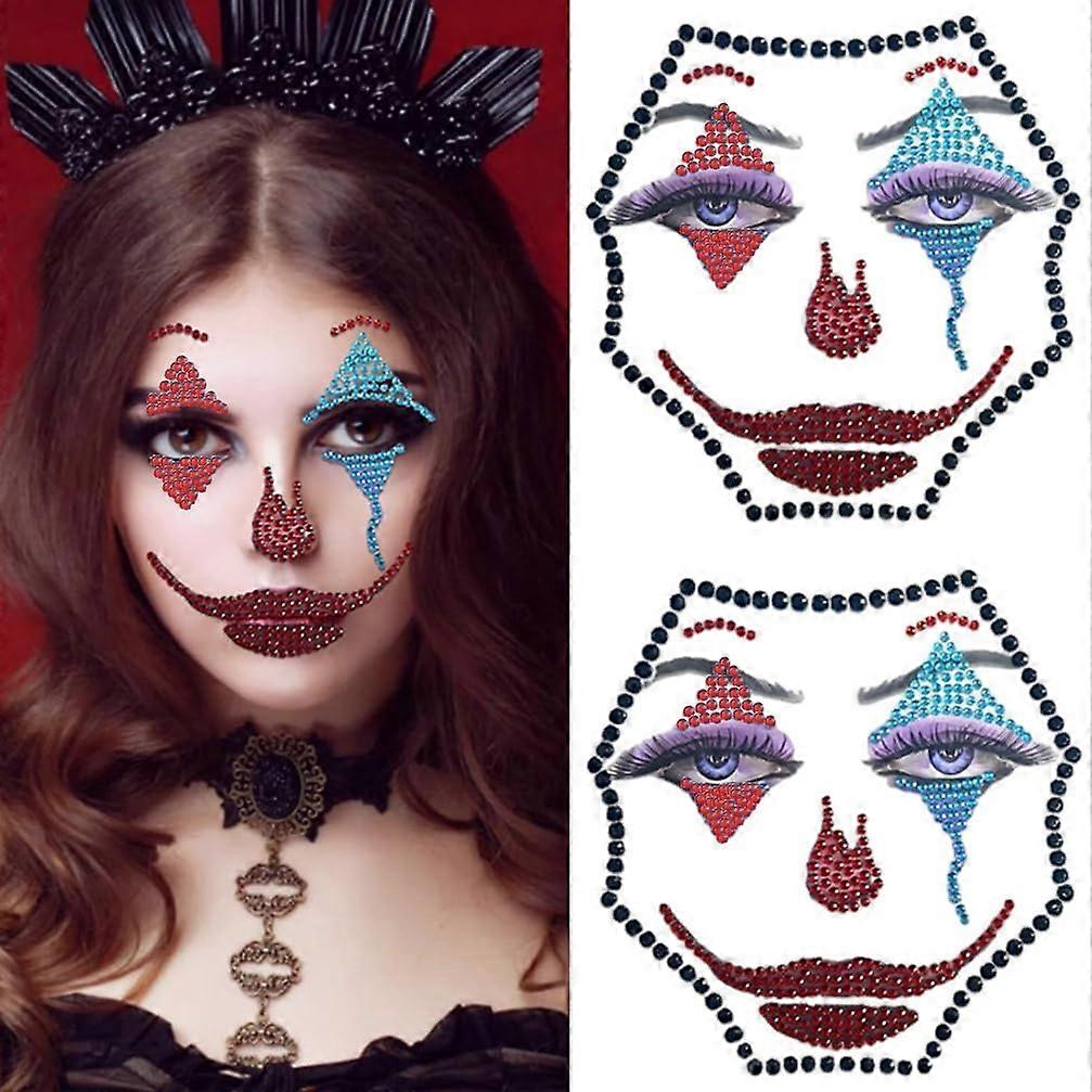 Color: Red Blue Quantity: 2 sheets (2 pieces) Product overview Decorative face gem stickers in red and blue that add sparkle and definition to festival, party, and formal looks. Each set includes two sheets of connected gems with a clear, gelatinlike adhesive backing for simple transfer and placement. Key benefits Fast application: Transfer design to the face in seconds using the singlepiece adhesive backing. No glue or special tools required for basic use. fit: Cut away any individual jewels with scissors to tailor the design to your face shape or makeup style. Eyecatching finish: Shimmery iridescent gems create a reflective, multitonal effect under lights to enhance photos and stage looks. Comfortable wear: The thin, gelatinlike backing helps the gems adhere smoothly and sit comfortably on the skin for event wear. Important attributes Colors: Red and blue Quantity: 2 sheets per package Material: Decorative gem elements with a clear gelatinlike sticky transfer backing Application: Peel and stick transfer; remove backing in one piece; trim as needed Removal: Gently peel off; backing can be removed intact Practical uses Festival or rave: Apply around the eyes and temples to catch stage and strobe lighting for a bold, reflective look. Formal events and parties: Add subtle sparkle to prom, wedding evening, or masquerade makeup for photos and closeup detail. Themed costumes and cosplay: Use as accent pieces for character makeup or theatrical costuming to save time while maintaining a polished appearance. Package contents Two sheets of prearranged face gem stickers in red and blue, ready to apply and .
