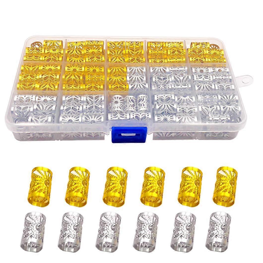 Dreadlock Hair Beads and Braiding Hair Cuffs Gold Silver Aluminum with Storage Box 170pcs