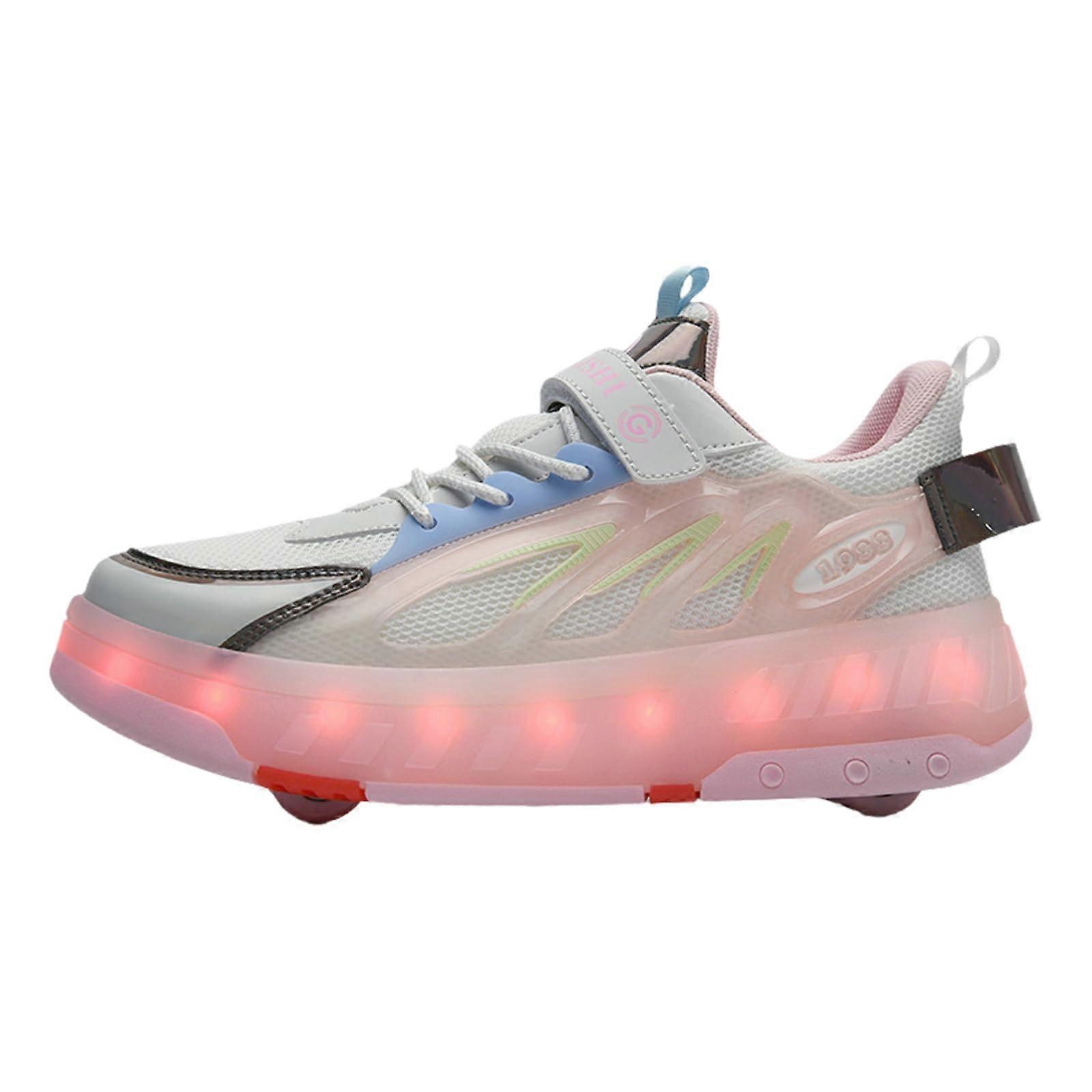LED Roller Skate Shoes for Kids Girls Boys, Pink Light Up Sneakers with Dual PU Wheels and AntiSlip Sole