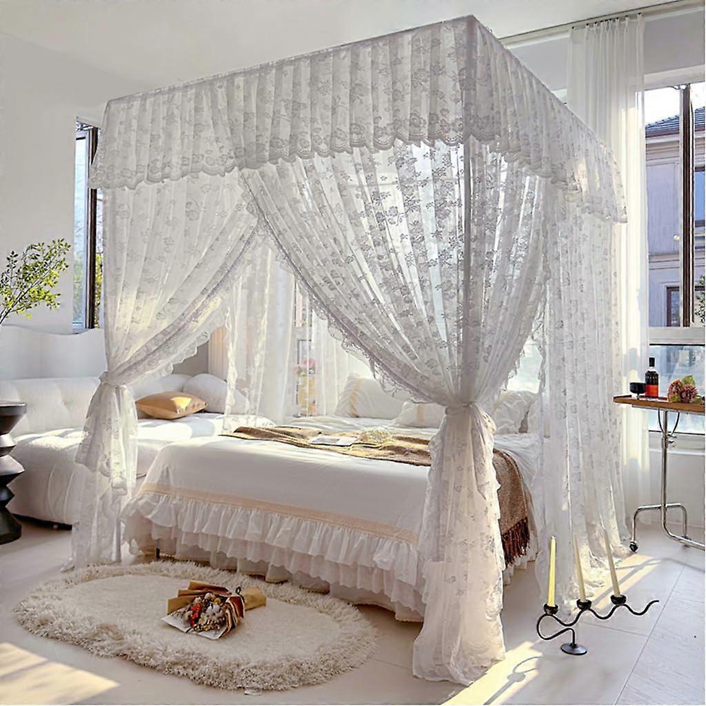 Queen Size White Lace Mosquito Net Bed Canopy for Adults with Three Door Access and Insect Protection