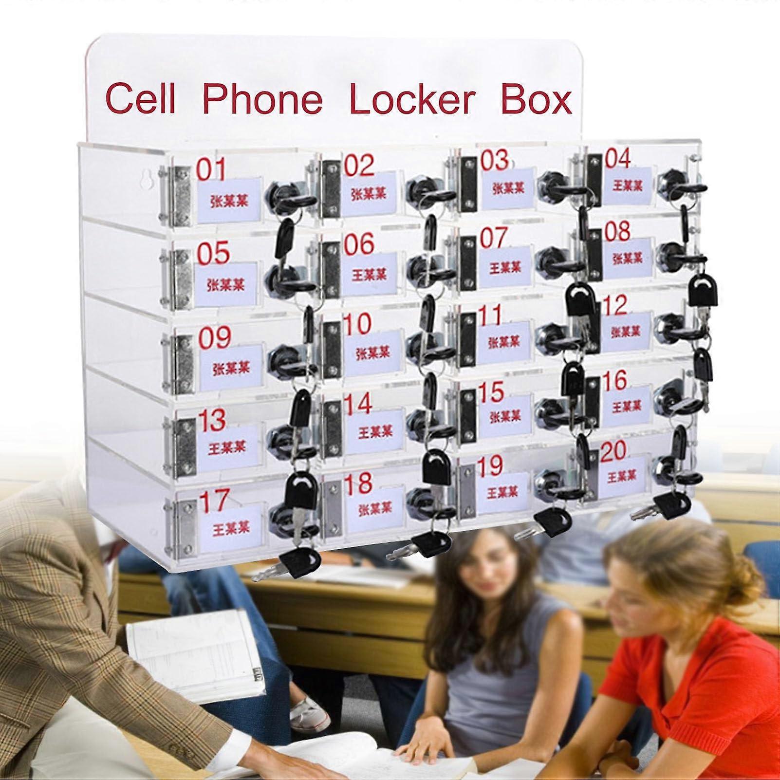 Clear Acrylic Cell Phone Storage Locker with 20 Slots and Secure Locks, Wall Mounted for Office or Classroom