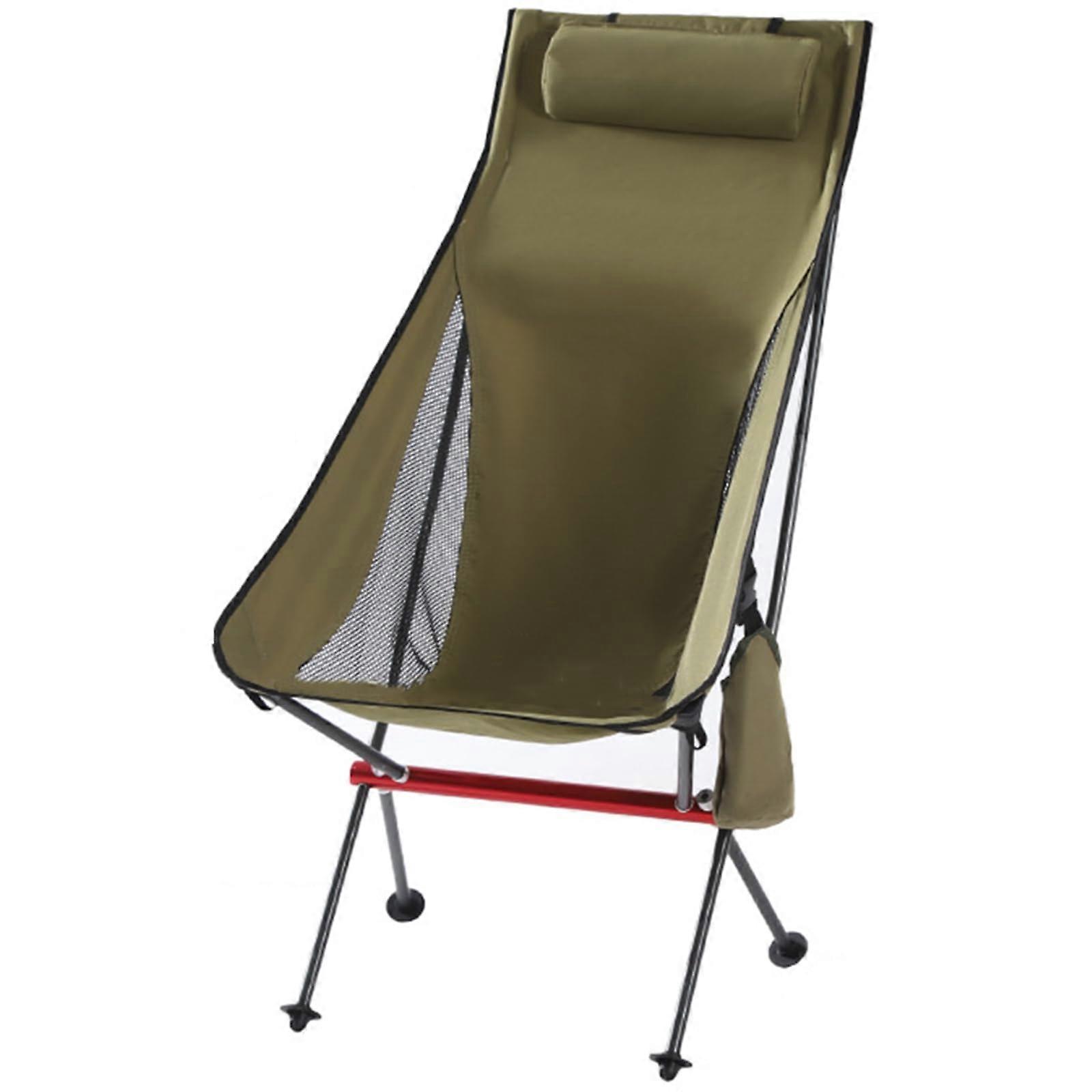 Green Lightweight Back Camping Chair with Side Pocket and Headrest for Hiking and Beach