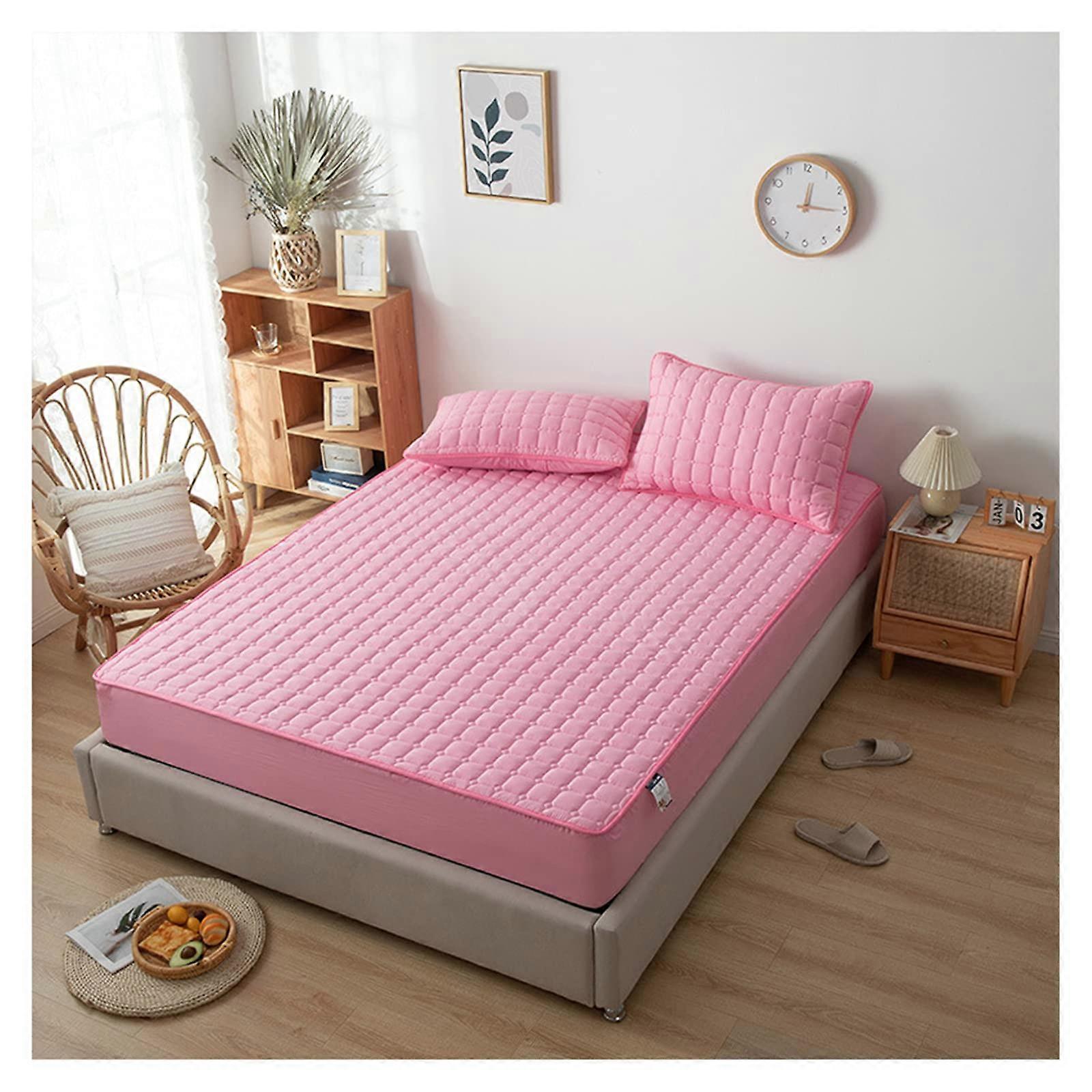 Waterproof Cotton Mattress Protector King Size Ultra Soft Breathable Cover with Elastic Deep Pocket Pink 180x200cm