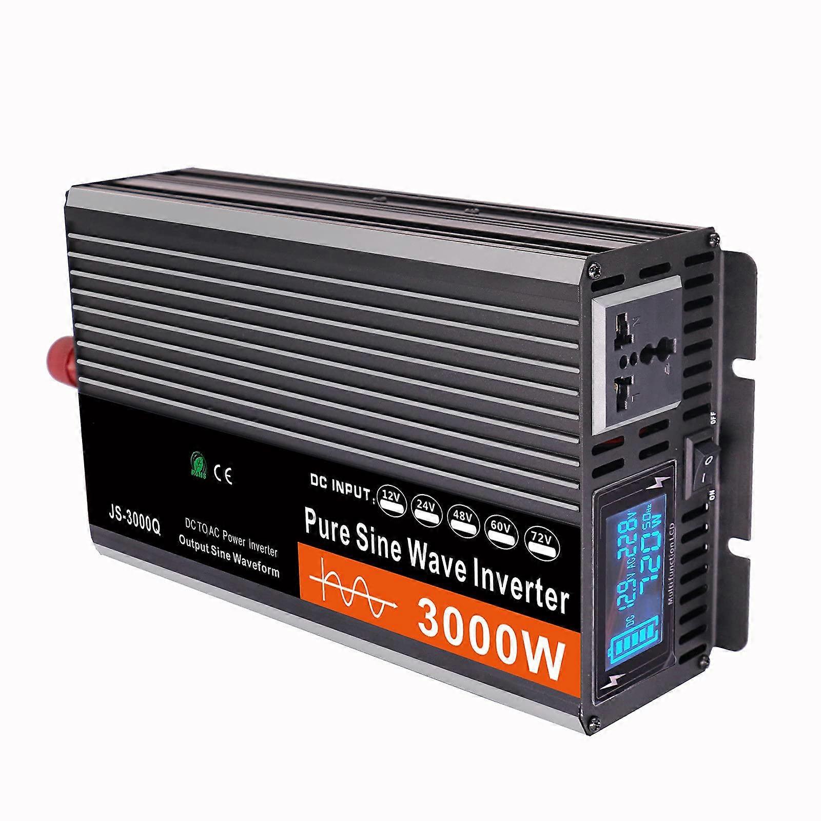 3000W Pure Sine Wave Power Inverter 12V to 110V DC to AC Converter with LCD for Car RV Boat