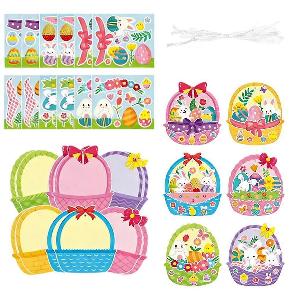 Rabbit Egg Basket DIY Scene Stickers With Ribbon Easter Kids Gift Hanging Ornament For Home Party Decoration Craft