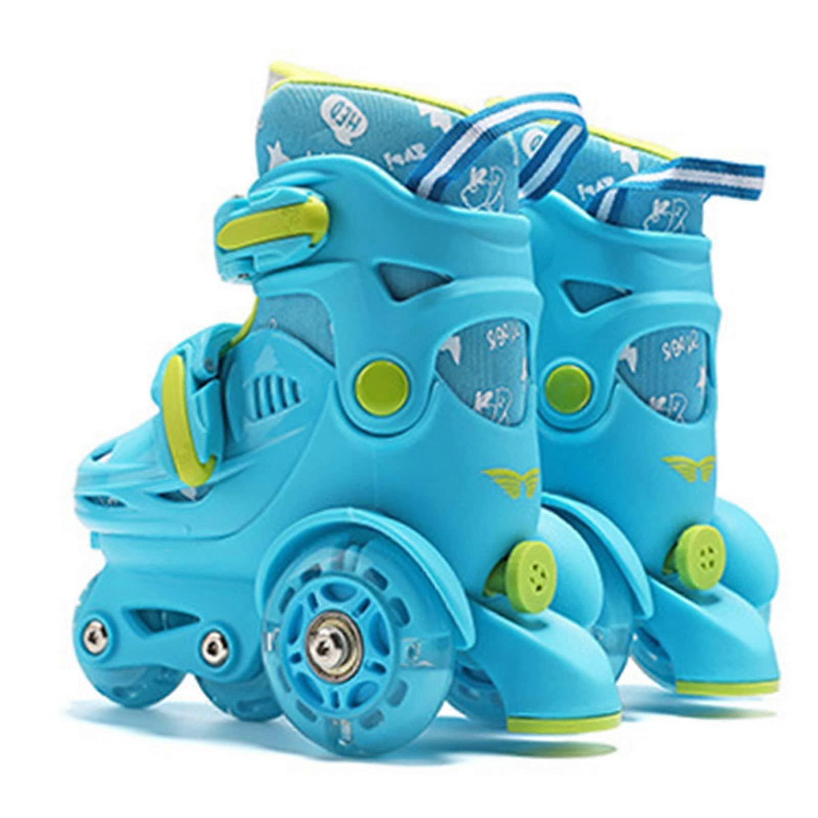 Kids Adjustable Roller Skates Light Blue with Double Brake Safety System and Breathable Comfort Lining