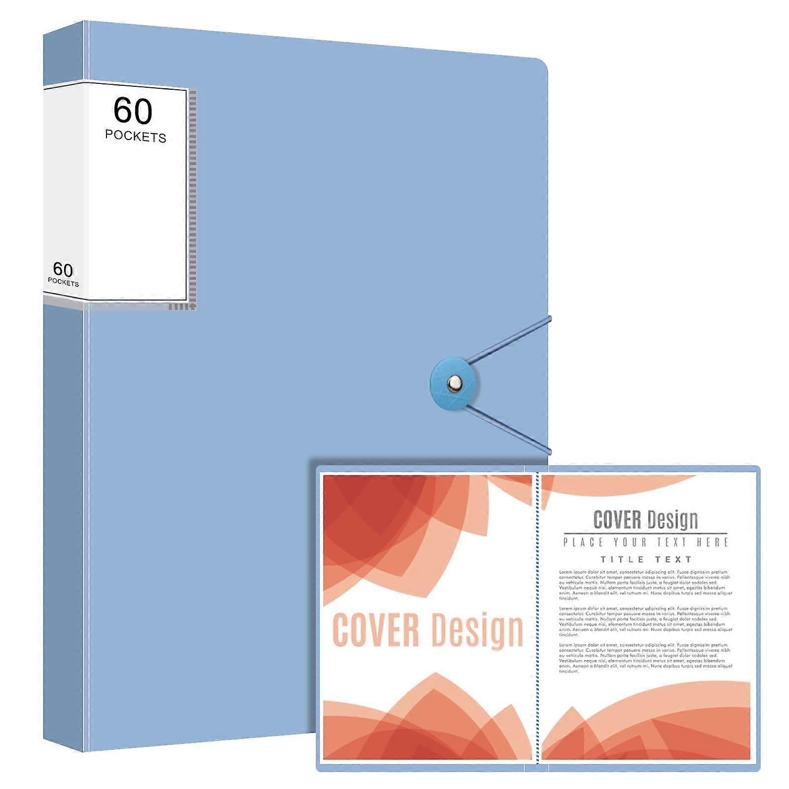 Blue Art Portfolio Folder with 60 Pockets 120 Page Display Book Clear Sleeves for Kids and Artists
