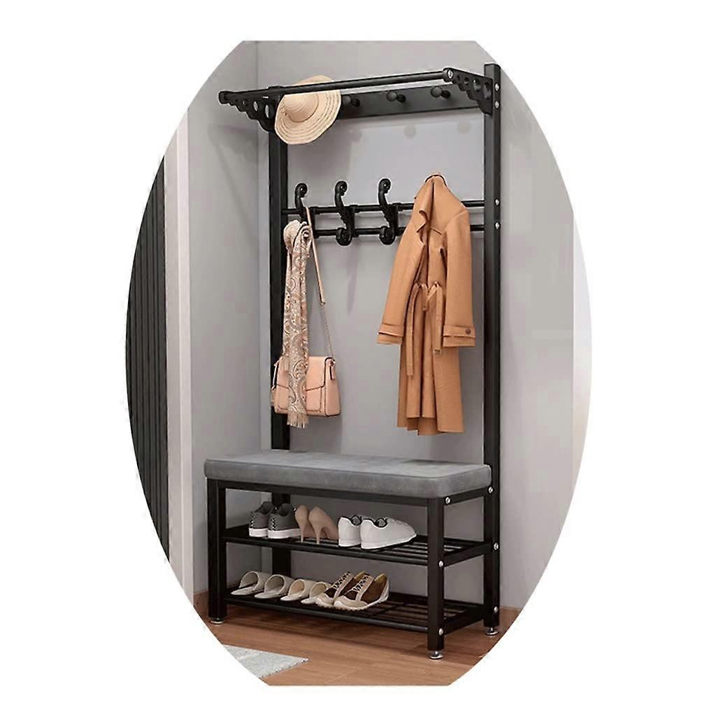 4in1 Hall Tree Coat Rack with Shoe Storage Bench, Metal Frame Hooks, Industrial Black Grey