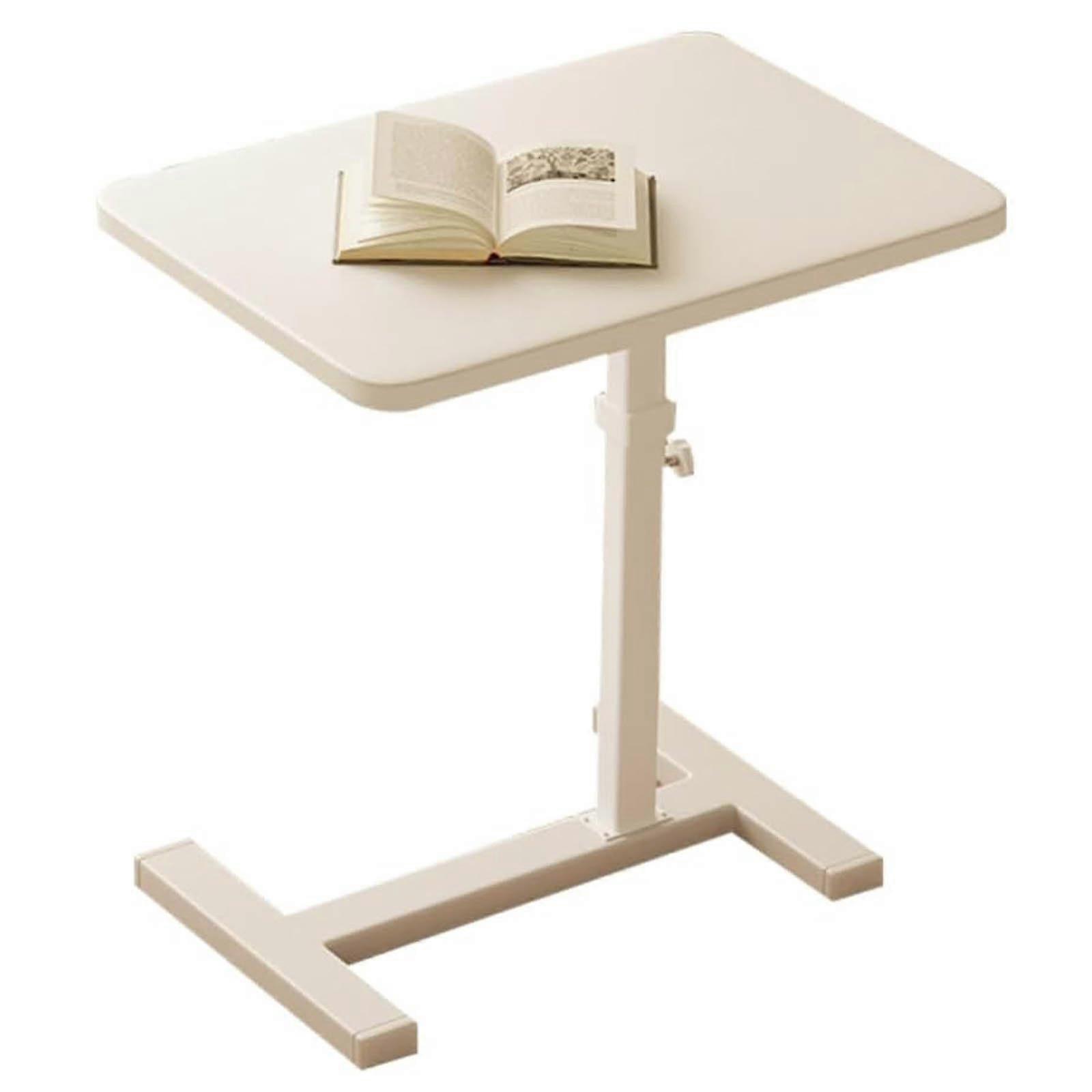 White Adjustable Over Bed Table with Wheels, C Shaped Side Table for Small Spaces Bedroom Living Room