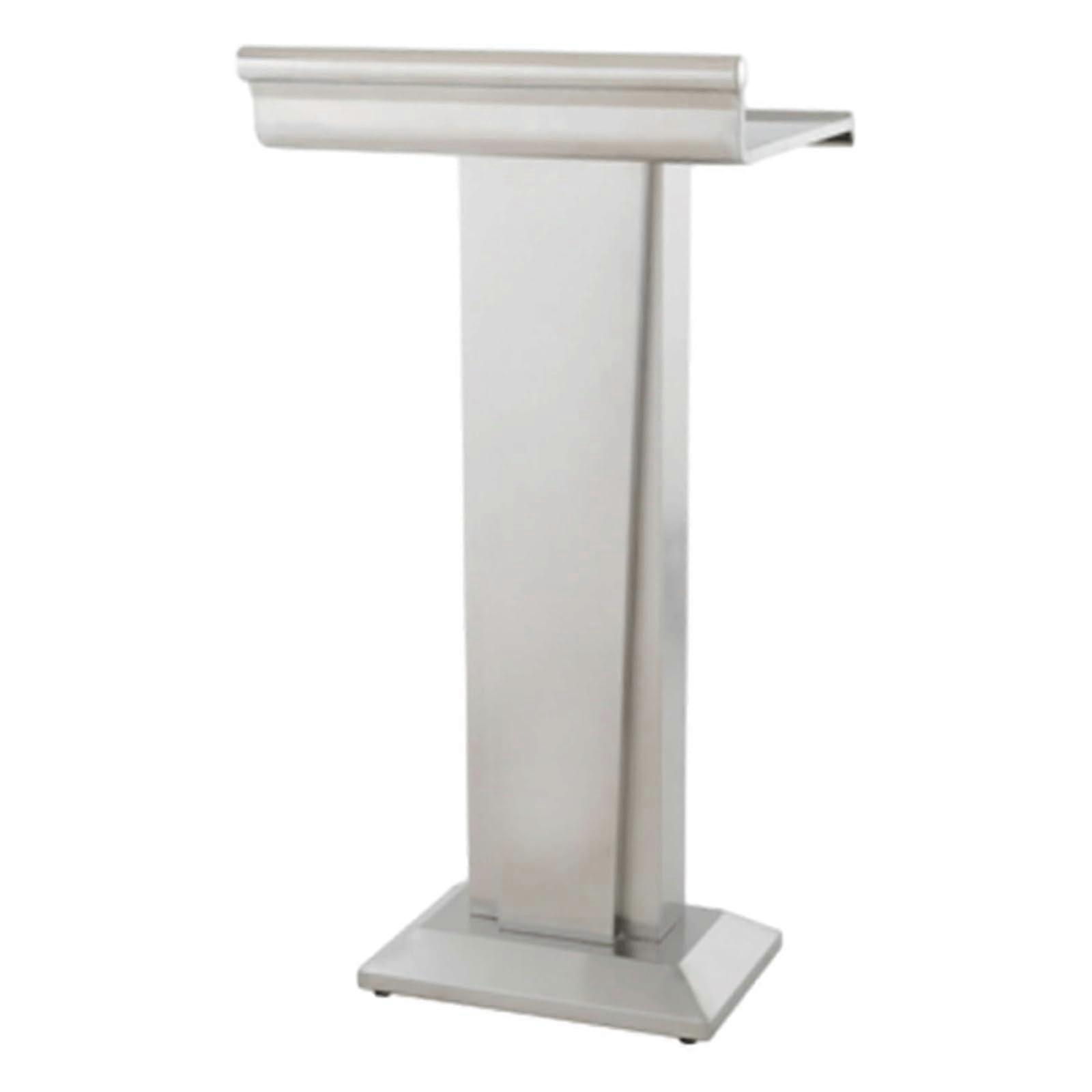 Stainless Steel Podium Stand with Large Reading Surface, Stable Base and Builtin Storage for Conference Rooms