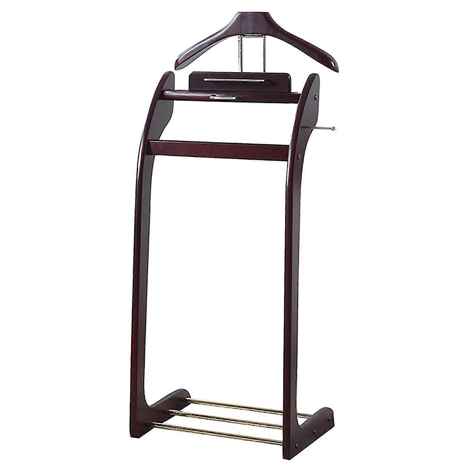 Wooden Clothing Valet Stand with Hanger Tray and Shoe Rack, Solid Wood Suit Organizer for Wardrobe