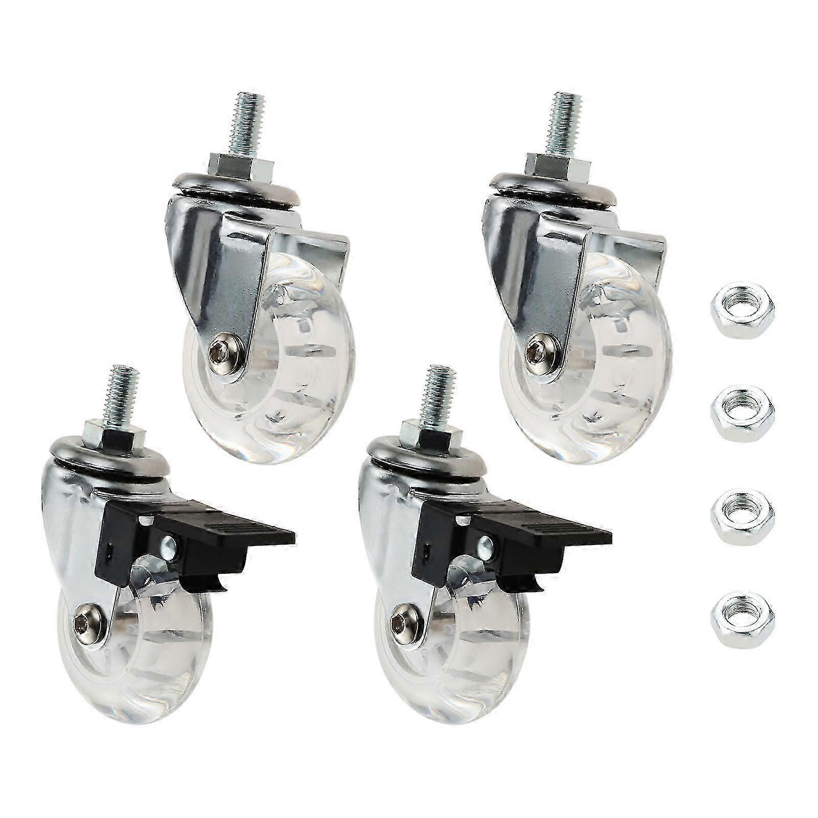 4pcs 2 Inch M8x15mm Screw Threaded Stem Casters Office Chair Caster Wheel Clear Swivel Casters With Brake For Sofa Chair CabinetEdition 0130