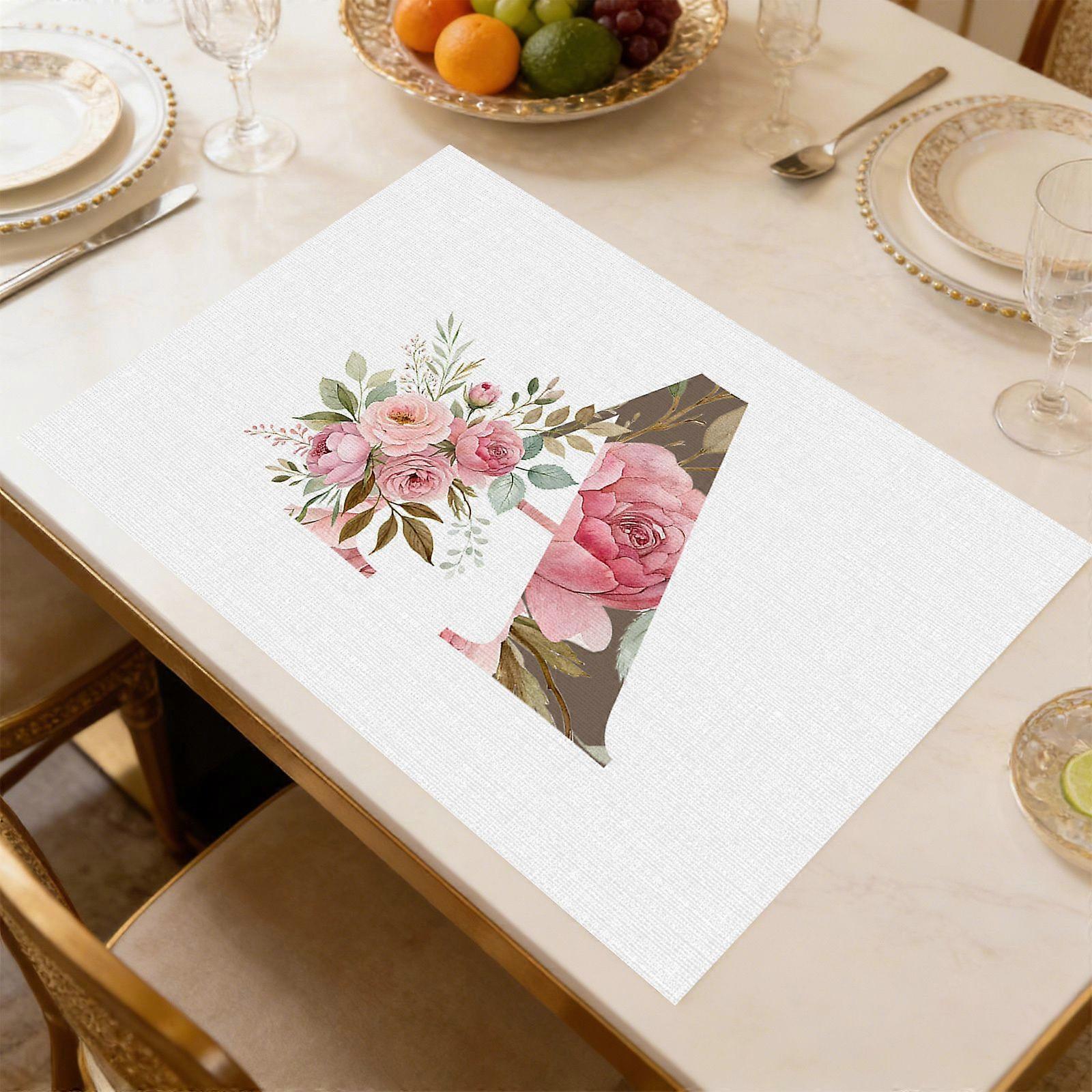 Flora Monogrammed A-Z Initial Placemat Set of 4, Initial Letter Flower Plants Watercolor Spring Summer Seasonal Coffee Table Mats for Outdoor Kitchen