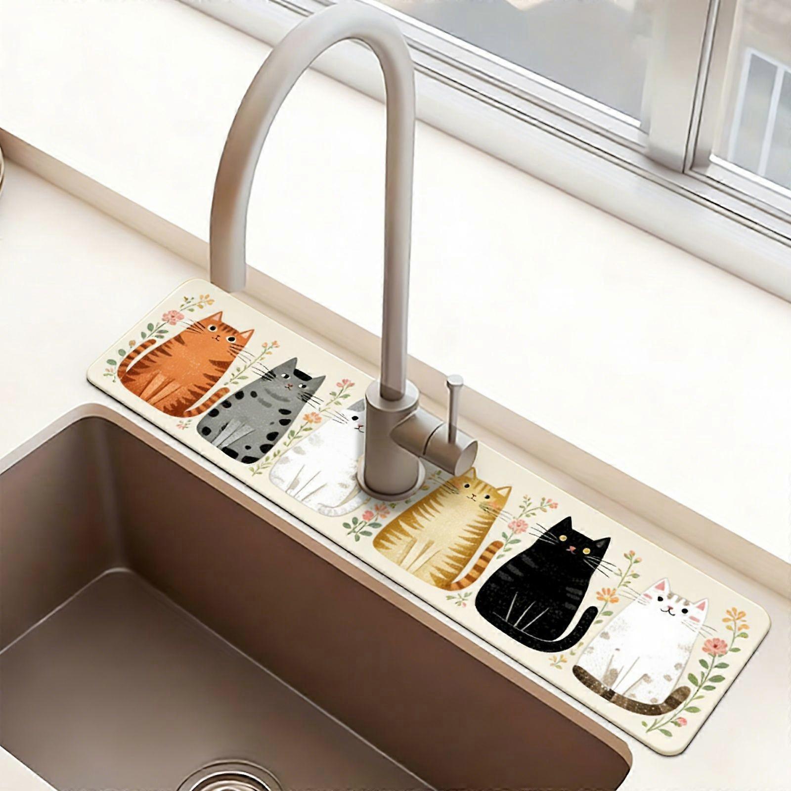 Cute Cartoon Cats Sink Splash Guard Faucet Draining Mat for Kitchen Sink, Super Absorbent Fast Drying Mat Sink Splash Guard Behind Faucet for Kitchen