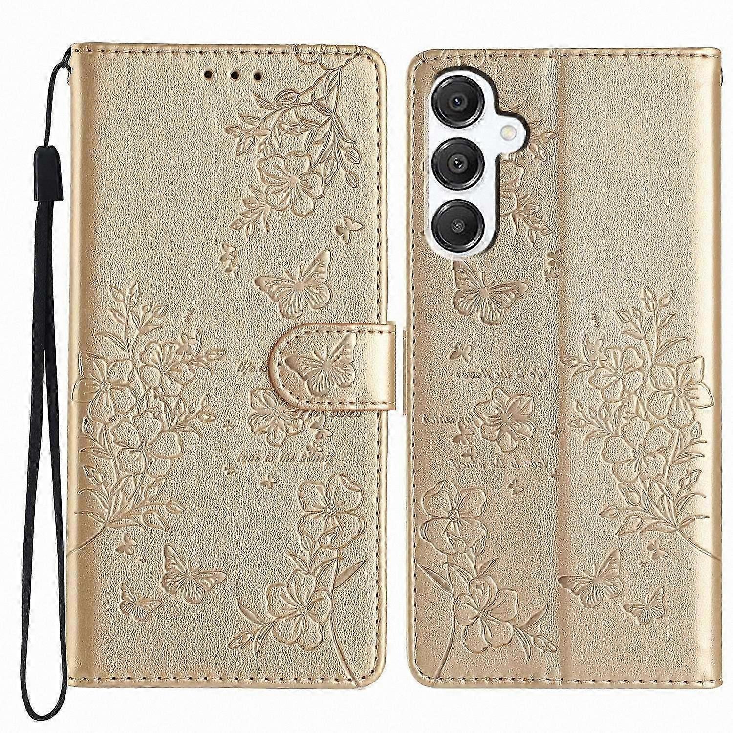 • Elegant Imprinted Design: Crafted from PU leather and TPU material, the case features butterfly and floral imprinting on the surface. • Multifunctional Stand: Equipped with a sturdy stand for hands-free viewing of videos, reading, or video calls. • Convenient Card Slots and Wallet: Includes multiple card slots and a wallet compartment for storing cards and cash. • Protective Flip Cover with Hand Strap: Flip cover design provides full protection with precise cutouts; includes an attached hand strap for easy carrying. • Comprehensive Protection: Precision-fit design safeguards the phone from drops, scratches, and everyday damage. Compatible with: Galaxy A26 5G Package includes: • 1 x Phone Case • 1 x Strap