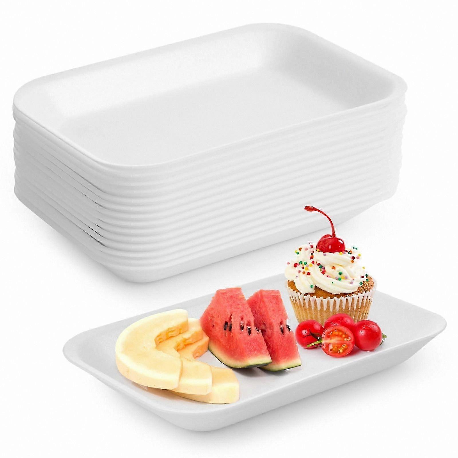 60 Pcs White Craft Foam Trays for Poultry Meat Fruit BBQ Grill Roast Rectangle DIY Craft Painting School