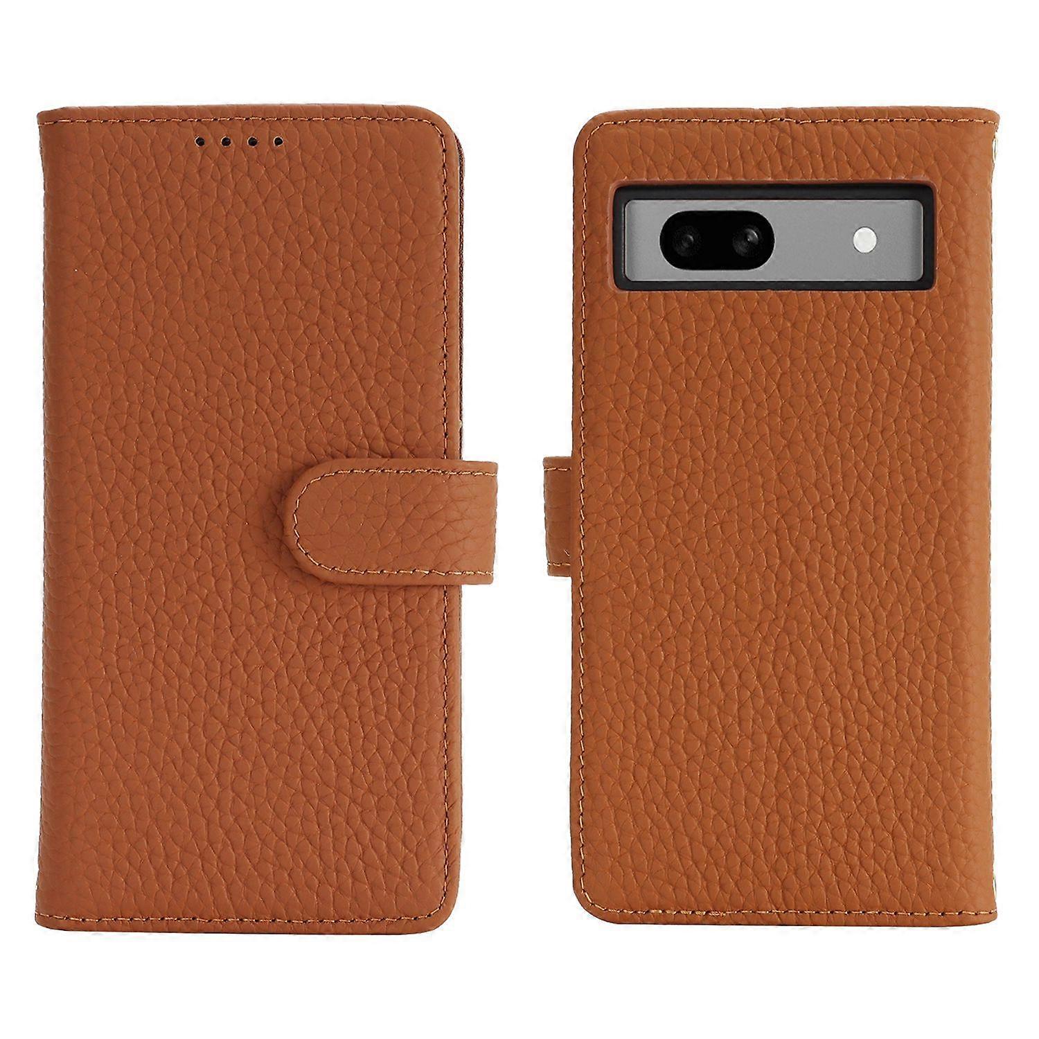 For Google Pixel 8a Stand Case Litchi Texture Genuine Cow Leather Wallet Phone Cover RFID Blocking -