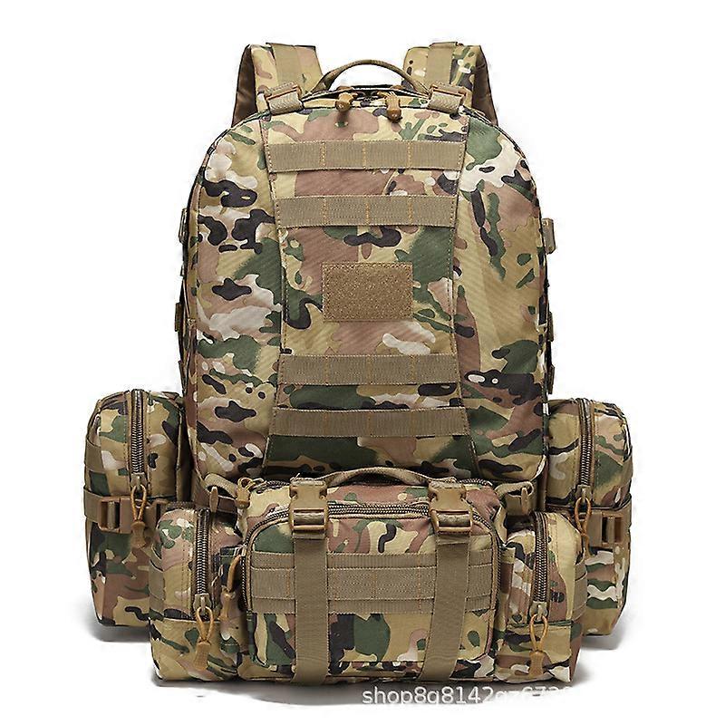 Color-block Tactical Backpack, Large Capacity, Outdoor Military Camouflage, Oxford Cloth, Mountaineering