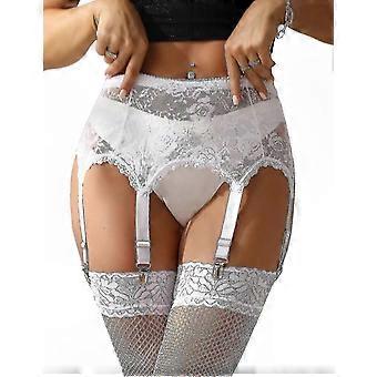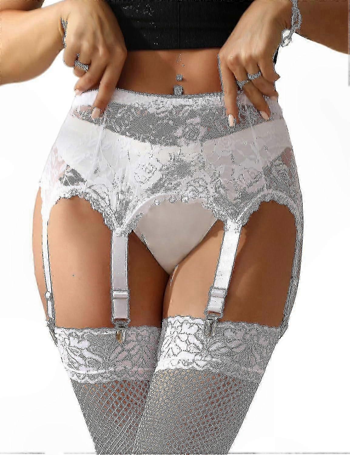 Plus Size Women's Lace Waist Garter with 6 Adjustable Metal Clips and Matching Set
