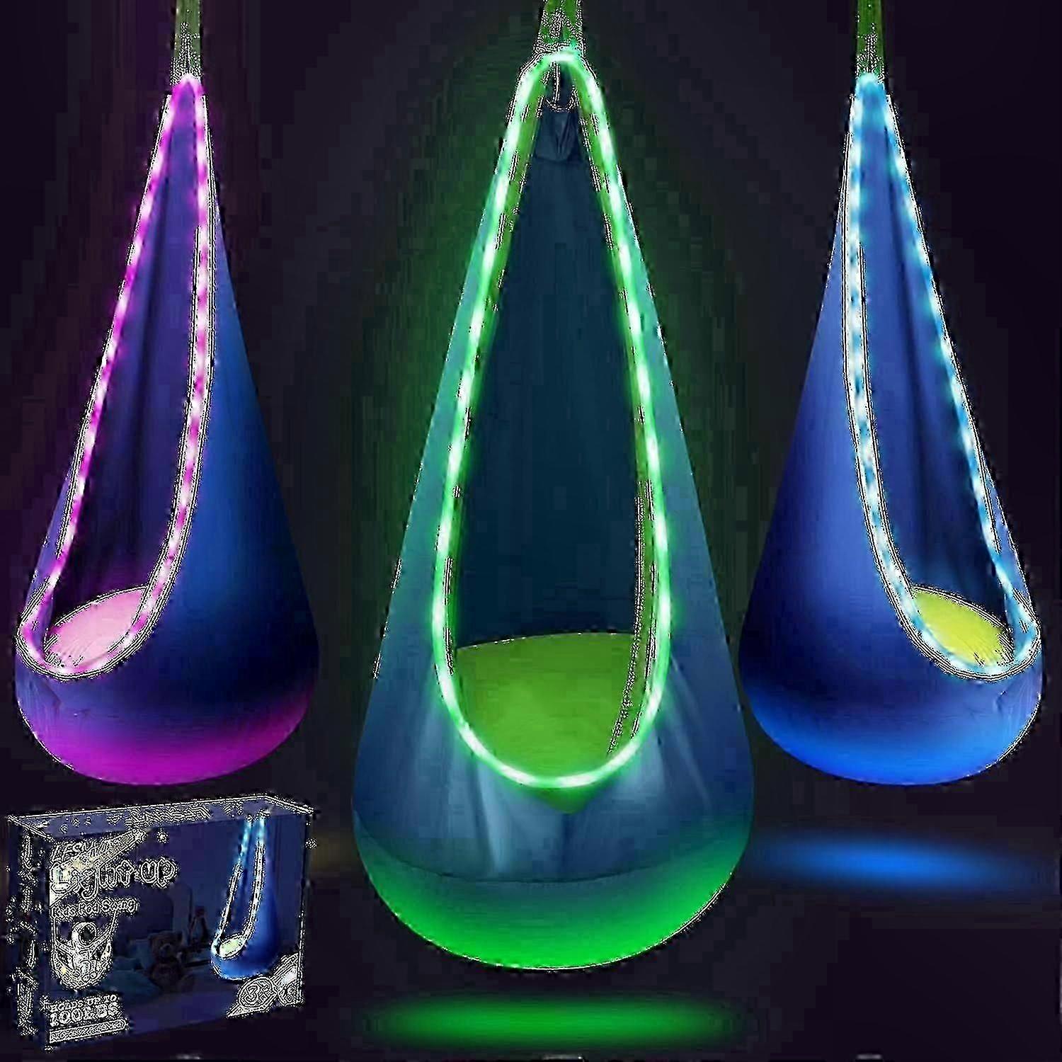 Kids' Reading Swing Chair with LED Lights and Inflatable Pillow for Indoor/Outdoor Relaxation
