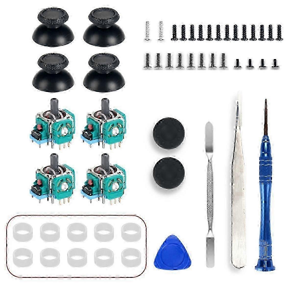 Four analog joysticks with joystick caps, suitable for 3D analog joystick potentiometers, with 10 joystick rubber rings.