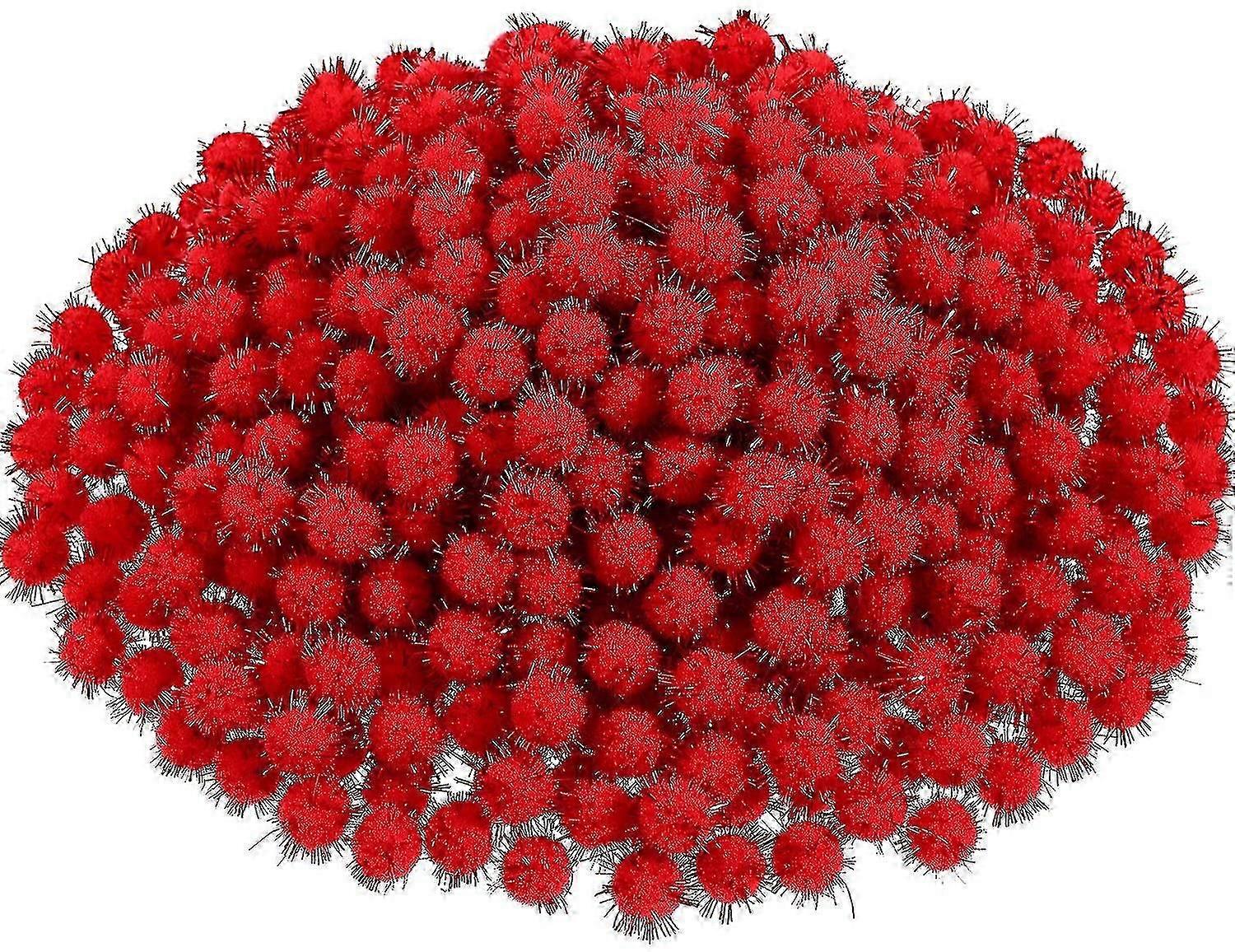 600 Christmas Pom-Pom Glitter Pom-Pom Craft Balls, suitable for Christmas crafts and party supplies (red)