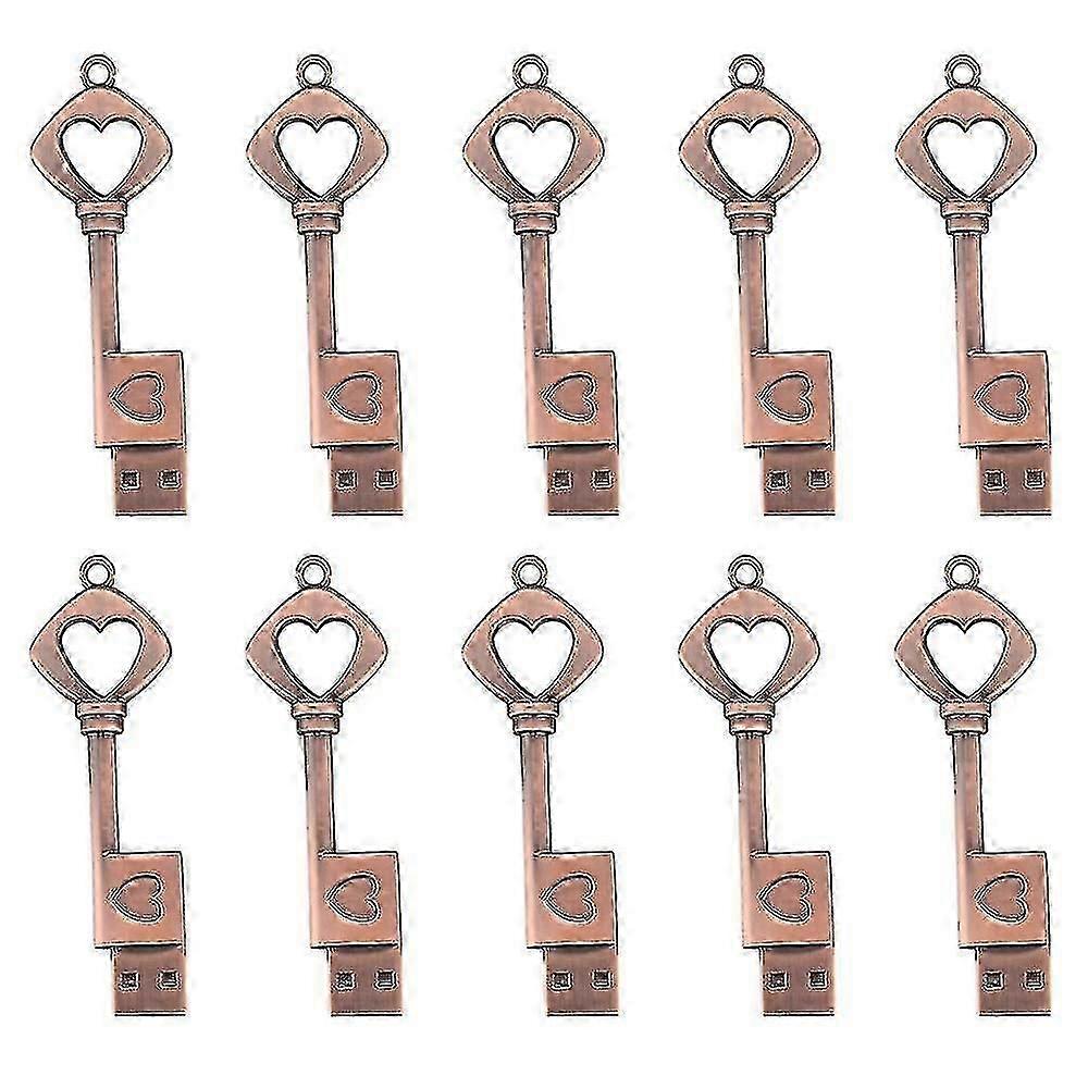 10-pack USB 2.0 Metal Flash Drives, Pure Copper Heart-Shaped, Keychain (Copper Color, 8GB) - Excellent