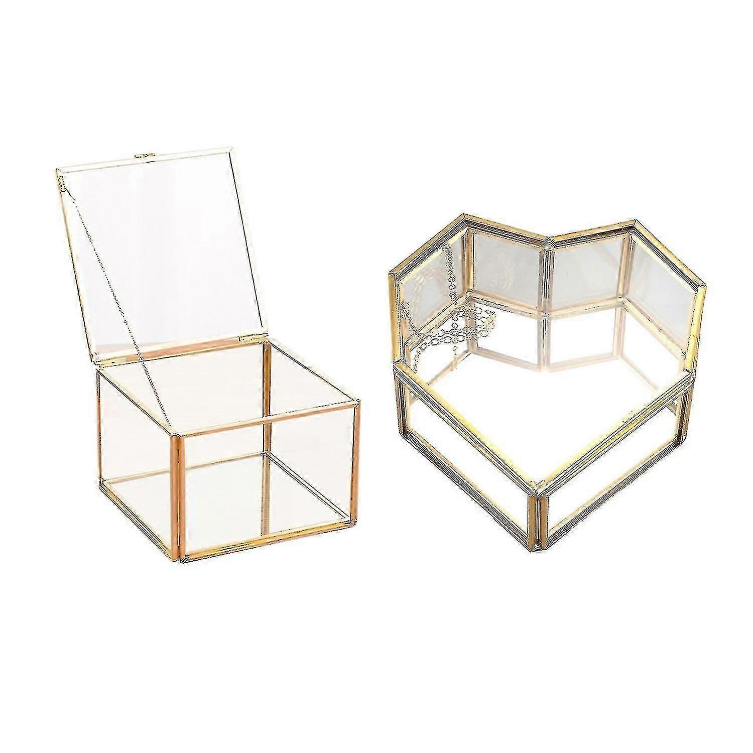 Square Opening Glass Geometric Garden Jewelry Box